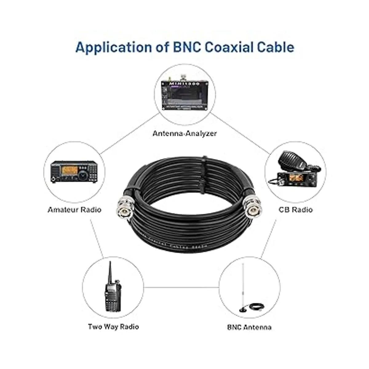 MOOKEERF Cable coaxial BNC macho a BNC macho de 35 pies, 50 ohmios RG58 cable coaxial con conectores BNC