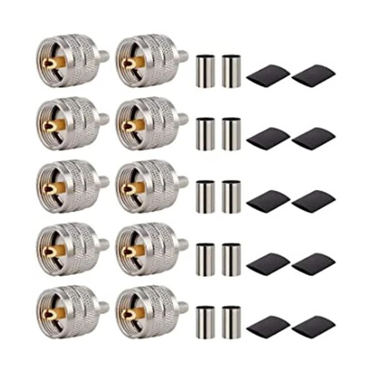 MOOKEERF PL259 UHF Adaptador de conector coaxial para cable RG58 LMR195 RG400 KSR195 paquete de 10