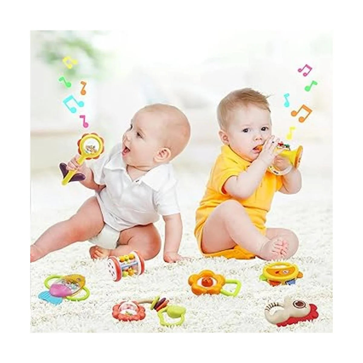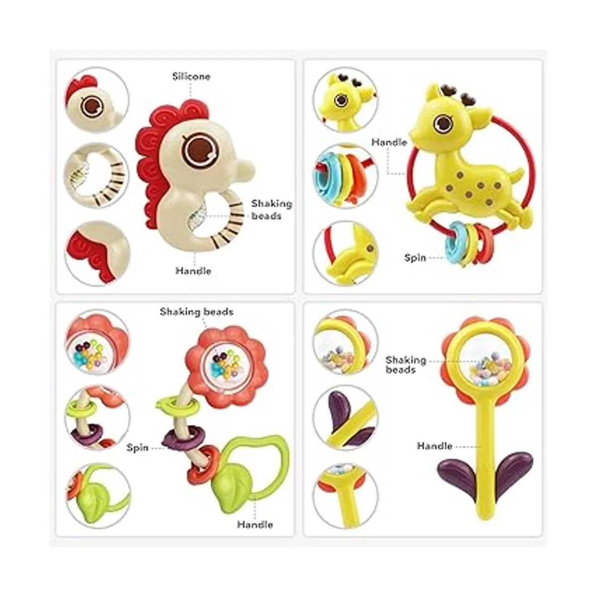 MOONTOY 12 juguetes de dentición de sonajero para bebés, juguete de sonajero para niños, juguete de sonajero, juego de juguetes musicales, educativos tempranos, juguetes masticables para recién nacidos, regalos para bebés de 0, 3, 6, 9 y 12 meses