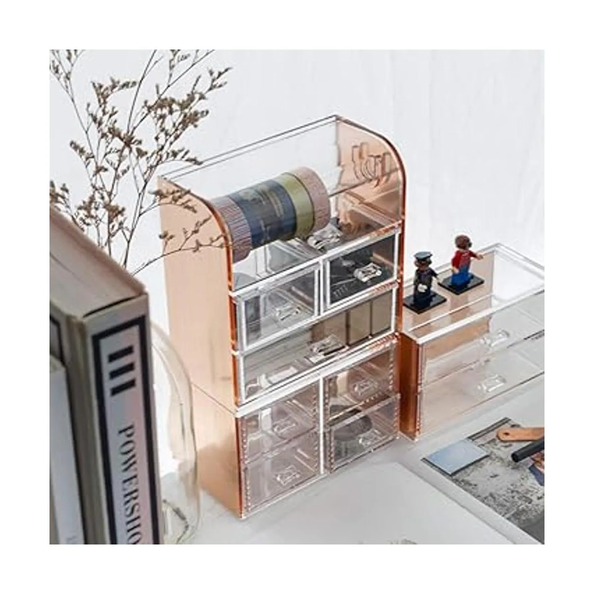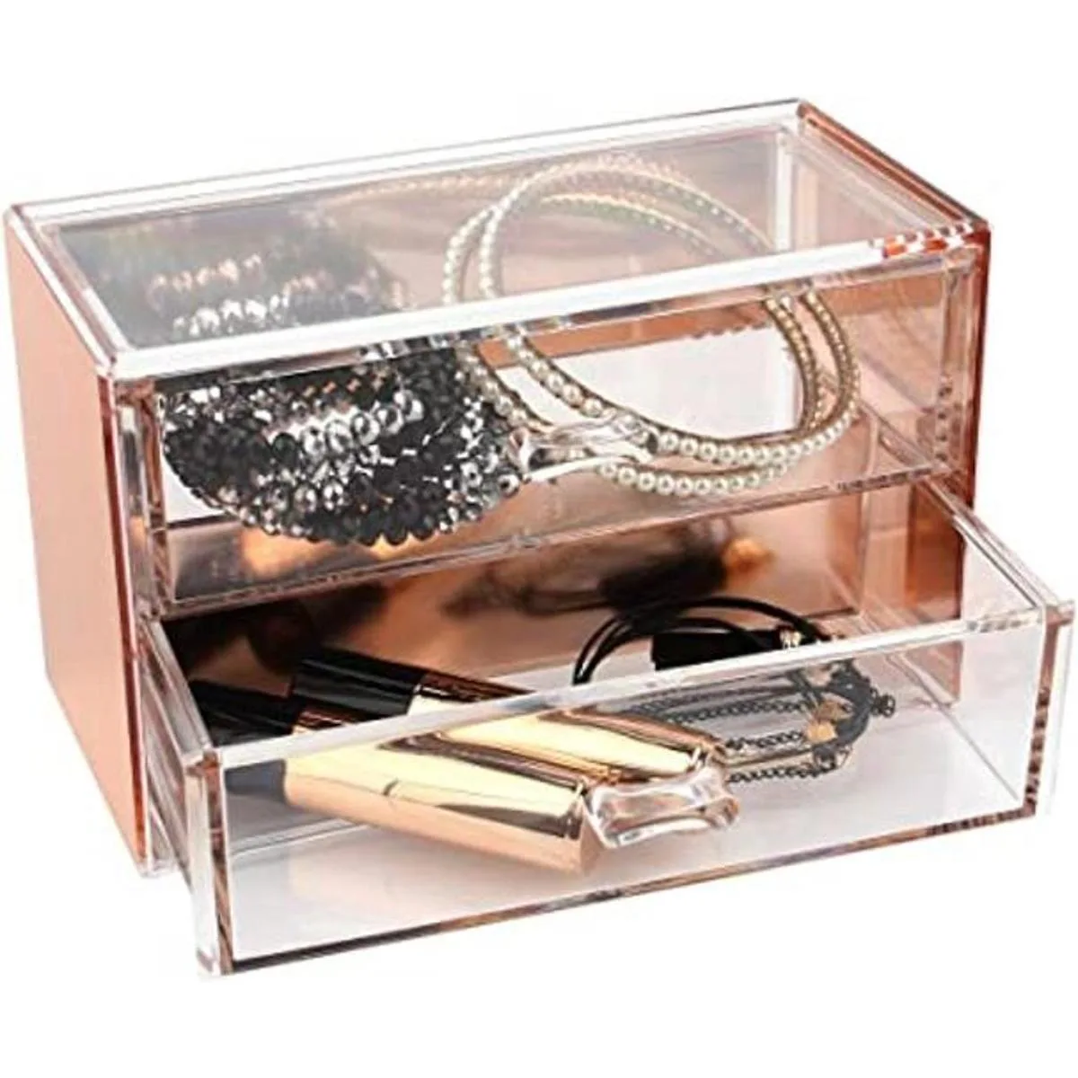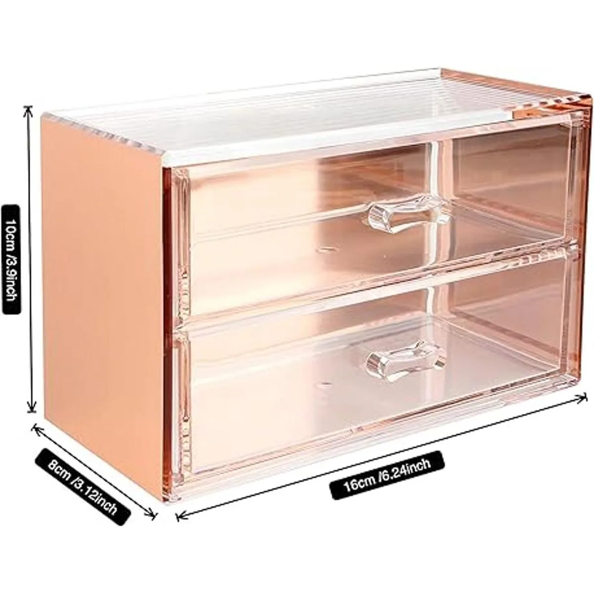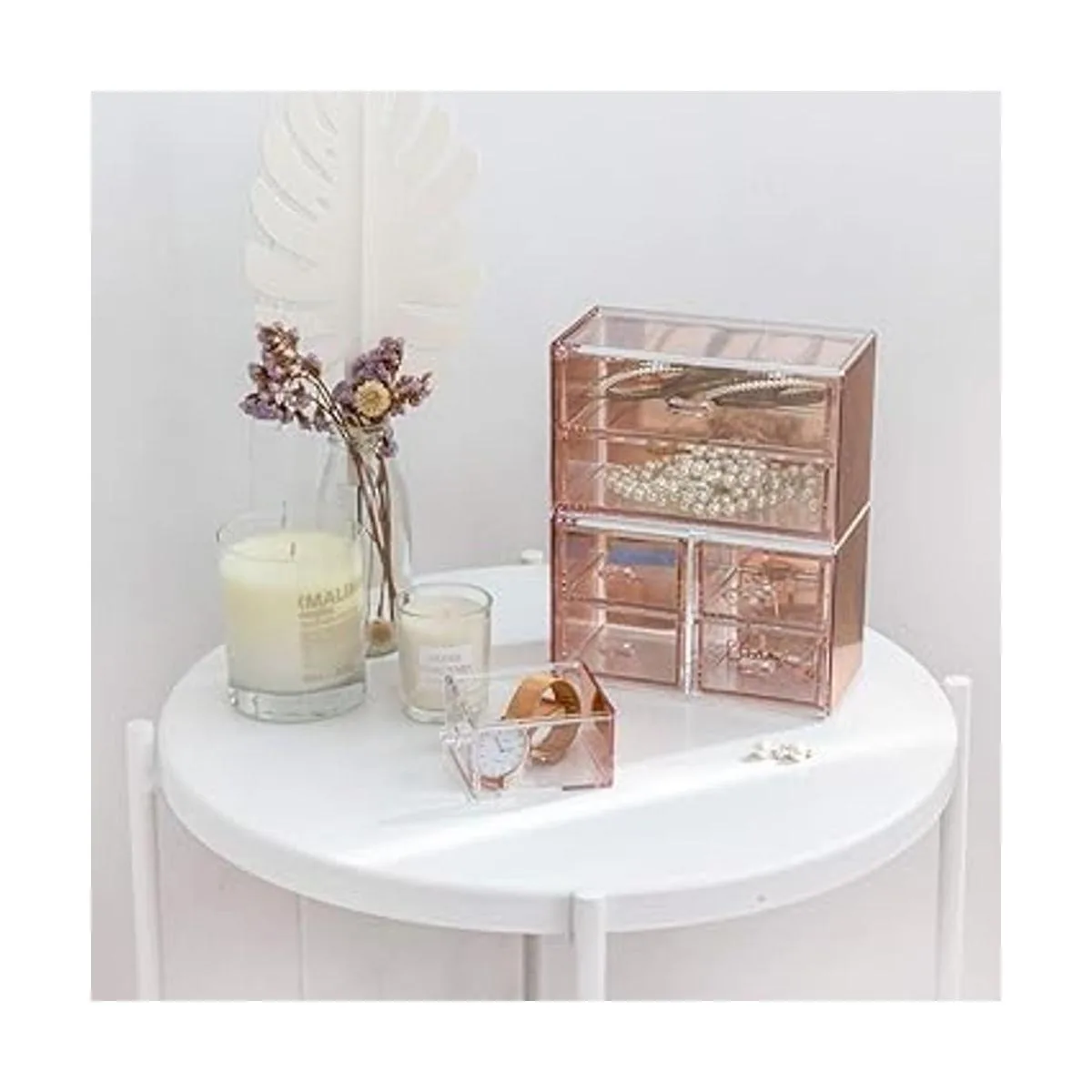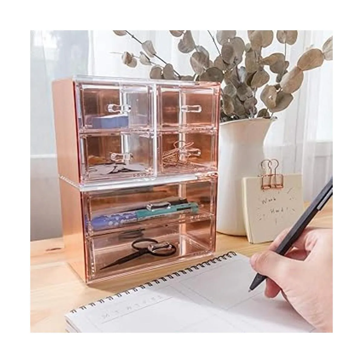 Se puede apilar fácilmente con los demás. Se puede utilizar por separado o combinar un montón de ellos depende de su requisito. Aquí hay 4 productos relacionados, son 2, 3, 4 y 6 cajones. Y 2 colores, oro y oro rosa.