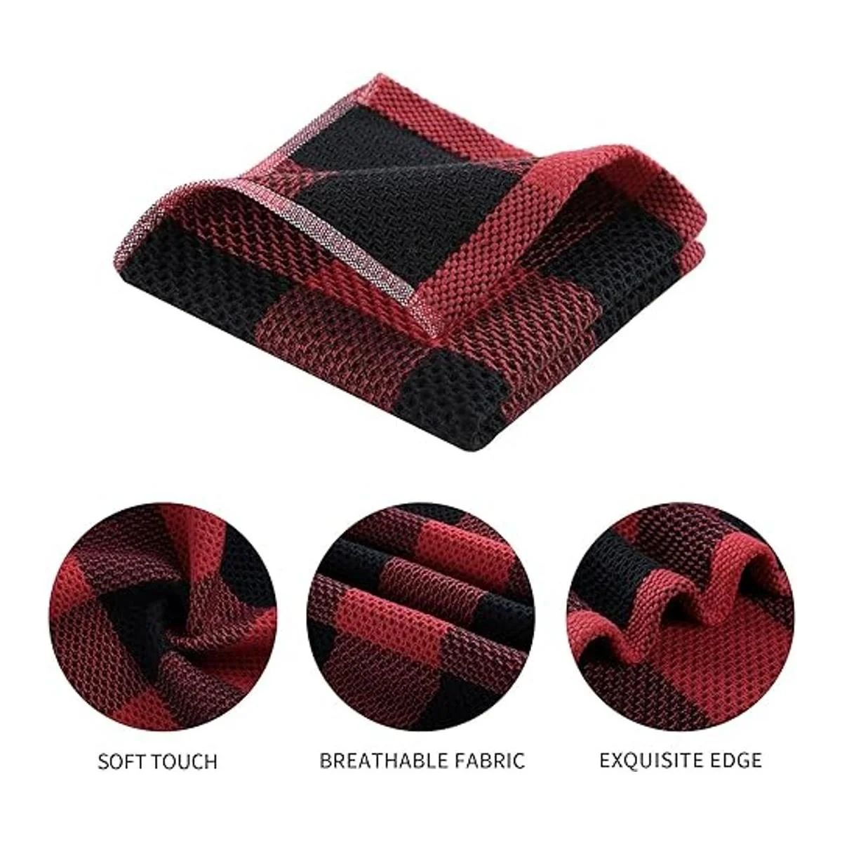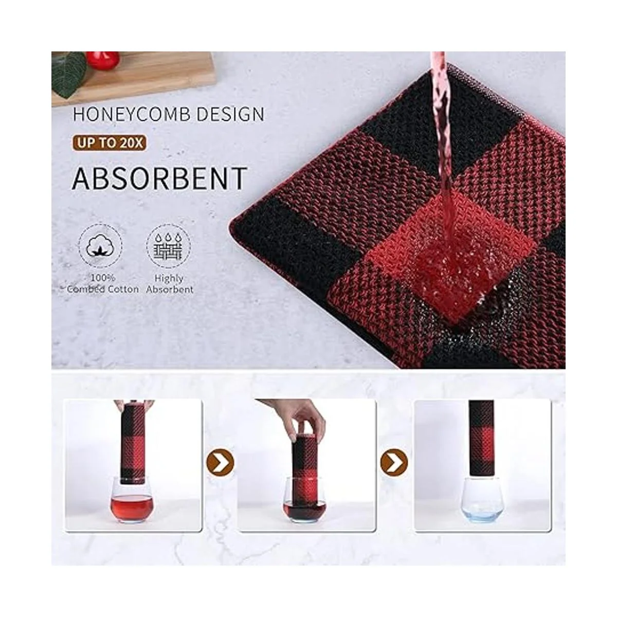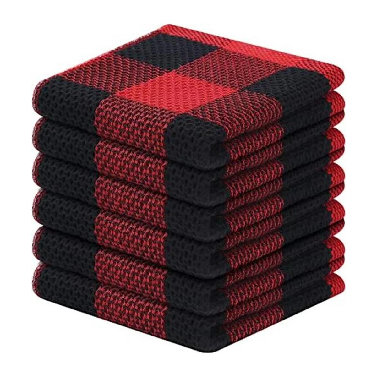 Mordimy Toallas de cocina 100 algodón con tejido gofre a cuadros, 13 x 28 pulgadas, toallas de cocina súper suaves y absorbentes para secar platos, paquete de 4, negro y rojo