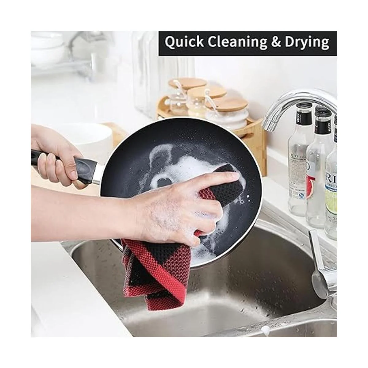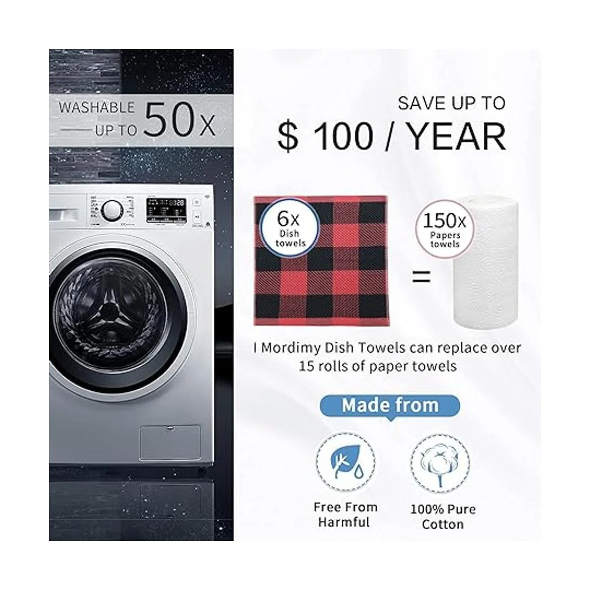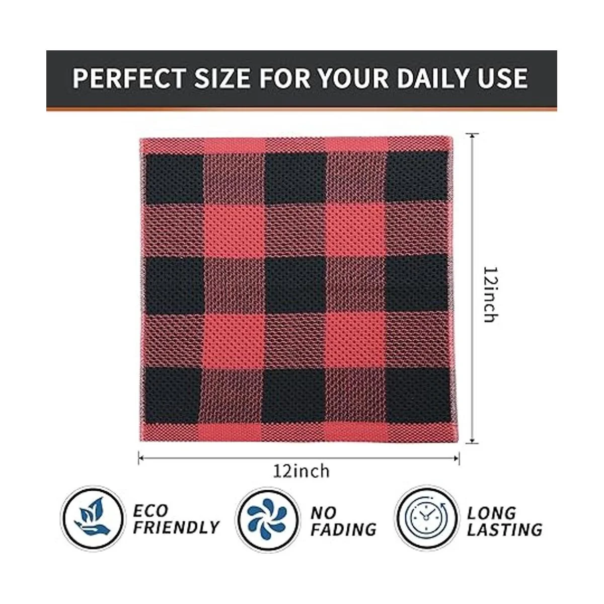 Mordimy Toallas de cocina 100 algodón con tejido gofre a cuadros, 13 x 28 pulgadas, toallas de cocina súper suaves y absorbentes para secar platos, paquete de 4, negro y rojo