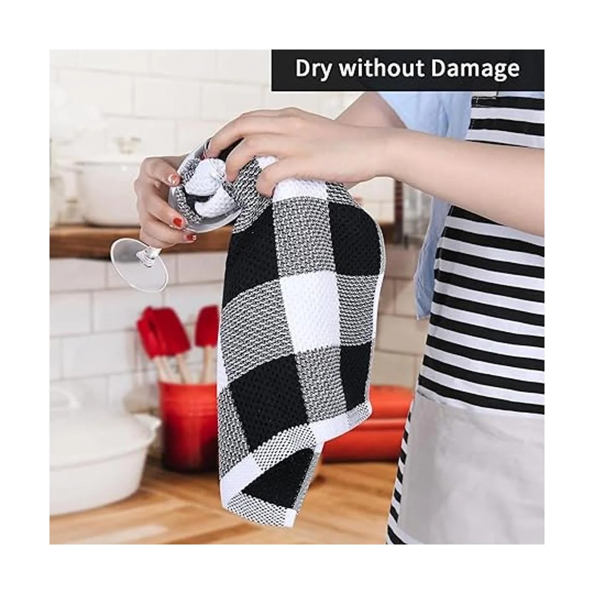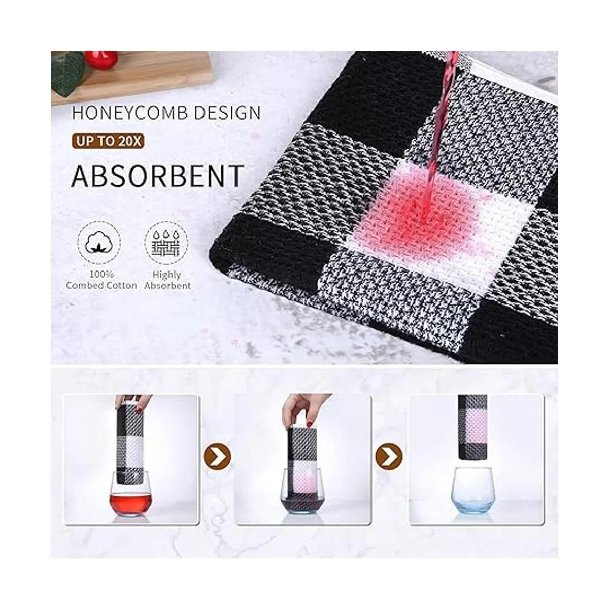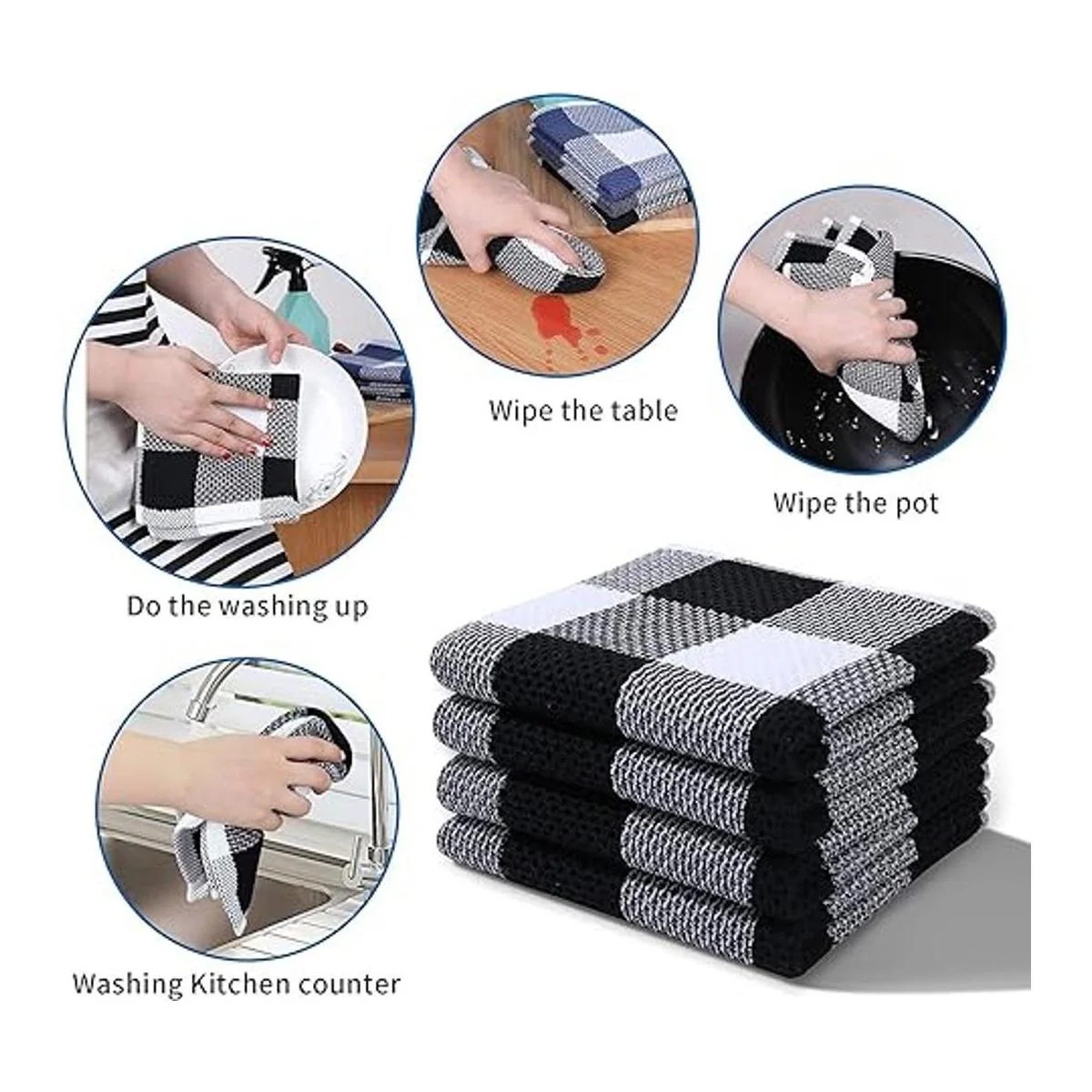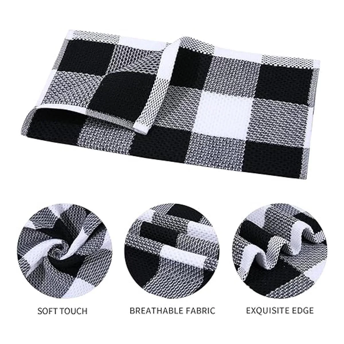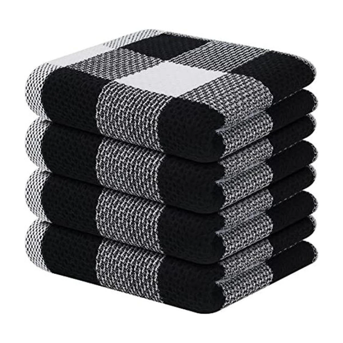 Mordimy Toallas de cocina a cuadros 100 de tejido gofre, 13 x 28 pulgadas, súper suaves y absorbentes, para cocina, paquete de 4, blanco y negro