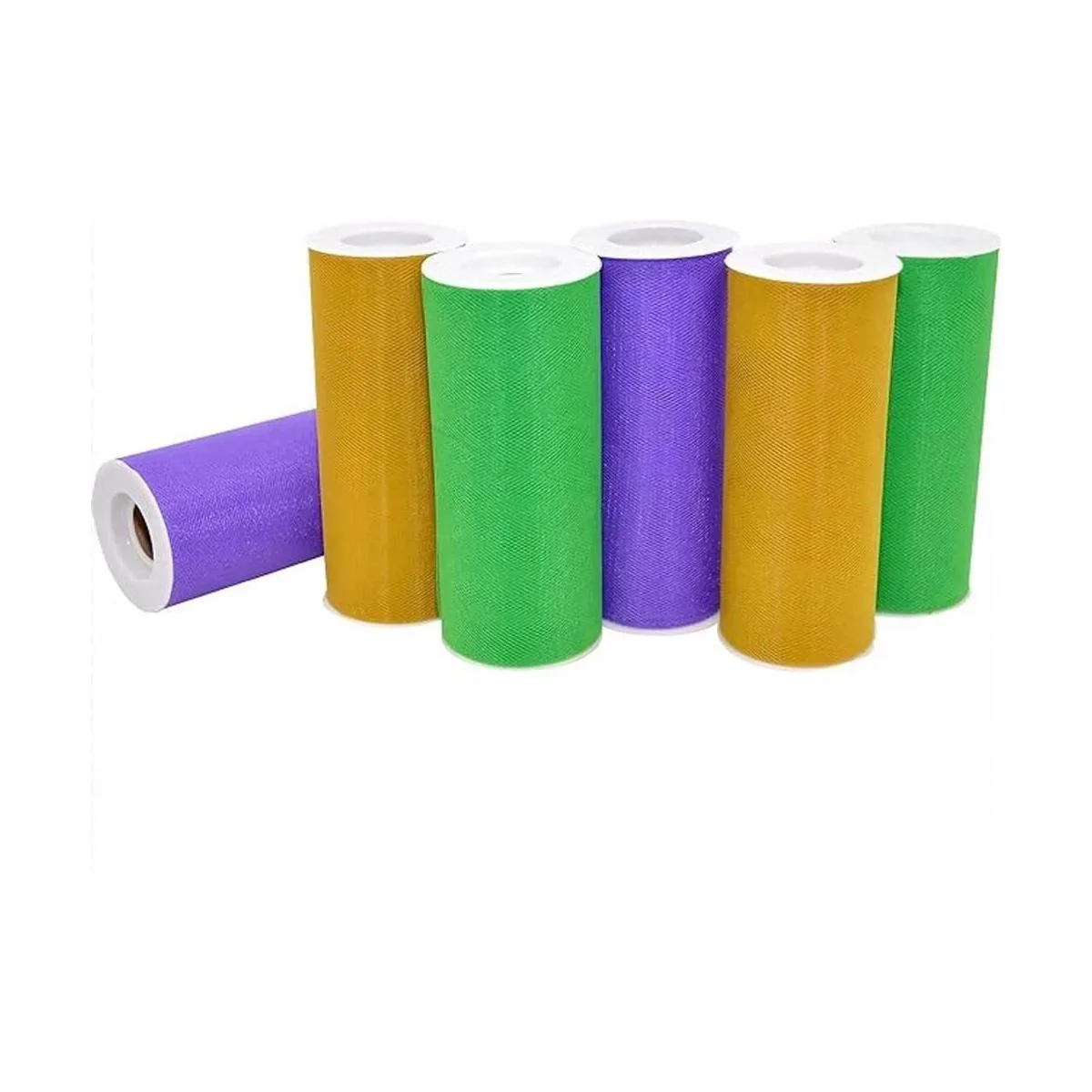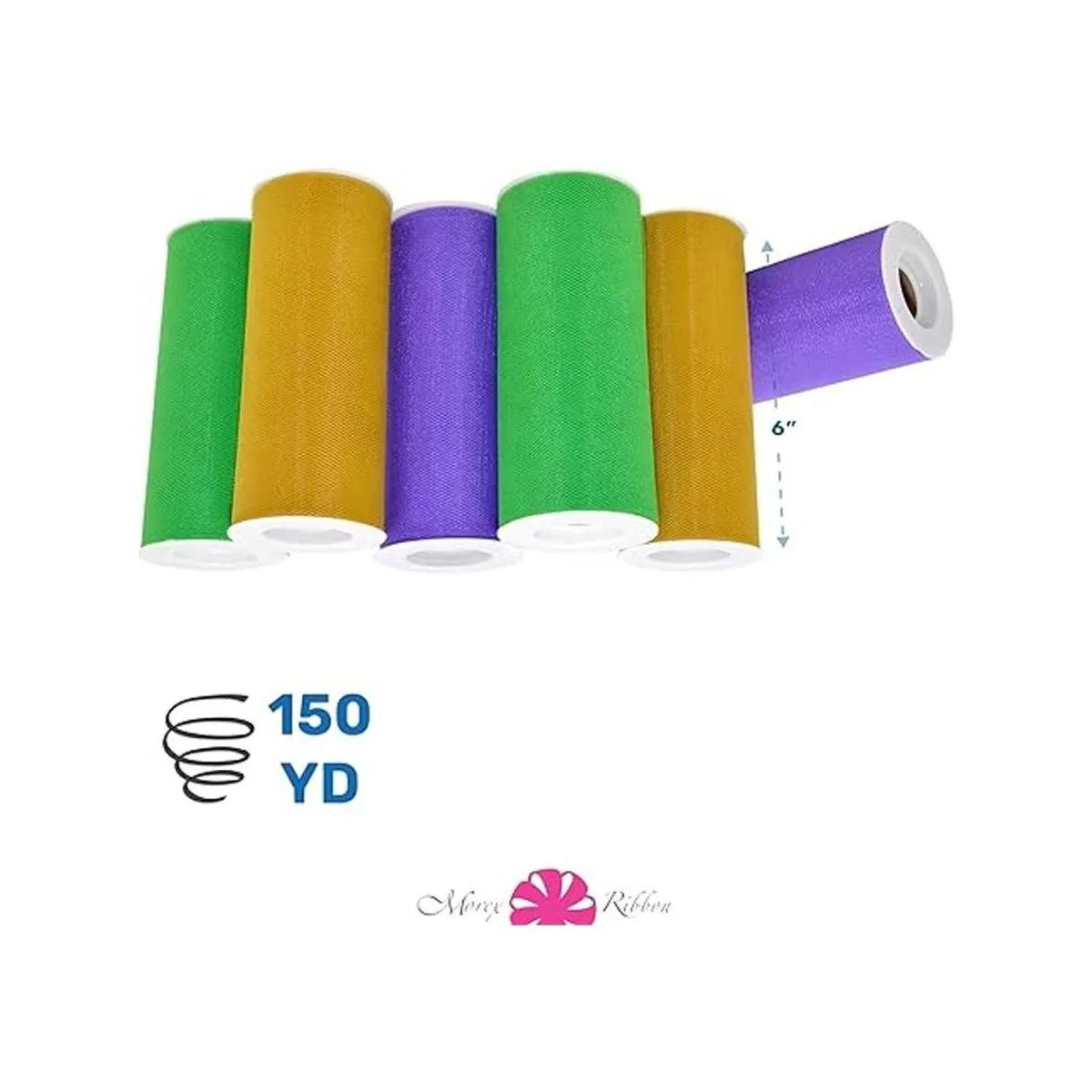 Los 6 paquetes de tule son perfectos para decorar fiestas de Mardi Gras o para ese fanático del embalaje. Ideal para hacer pompones 6 bobinas, 25 yardas cada una.