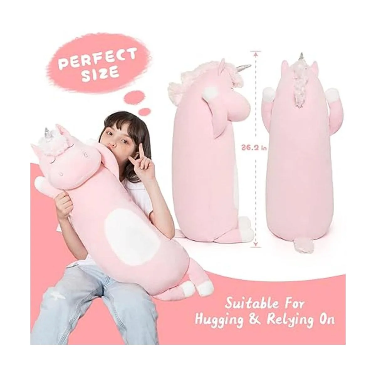 MorisMos Almohada corporal de unicornio grande, animal de peluche de unicornio de 36.2 pulgadas, almohada de unicornio súper suave para niñas y niños, almohada de felpa gigante de unicornio para Navidad, cumpleaños, día de San Valentín, rosa