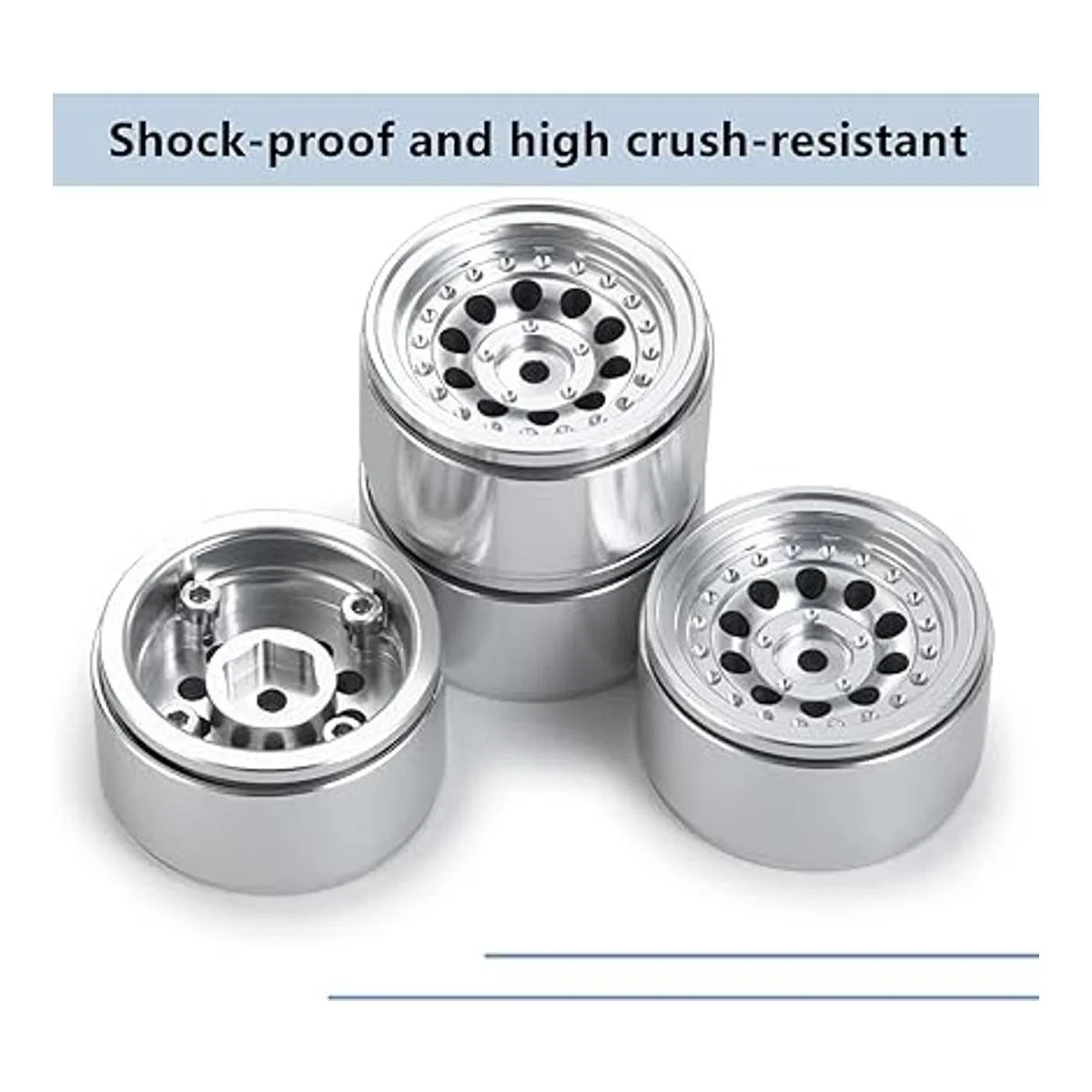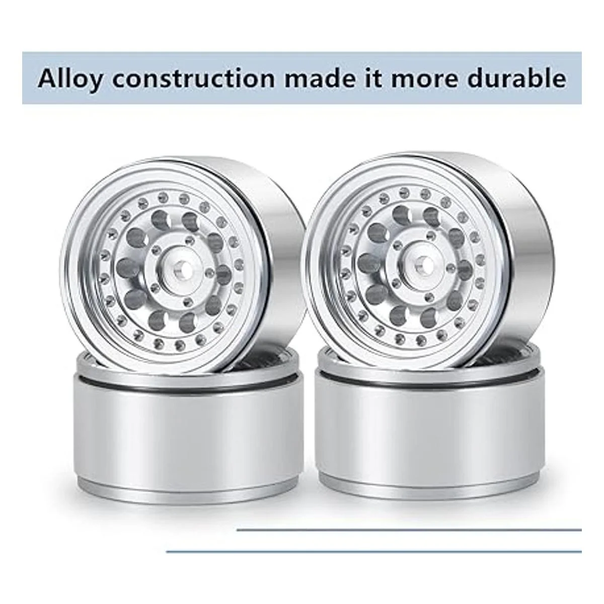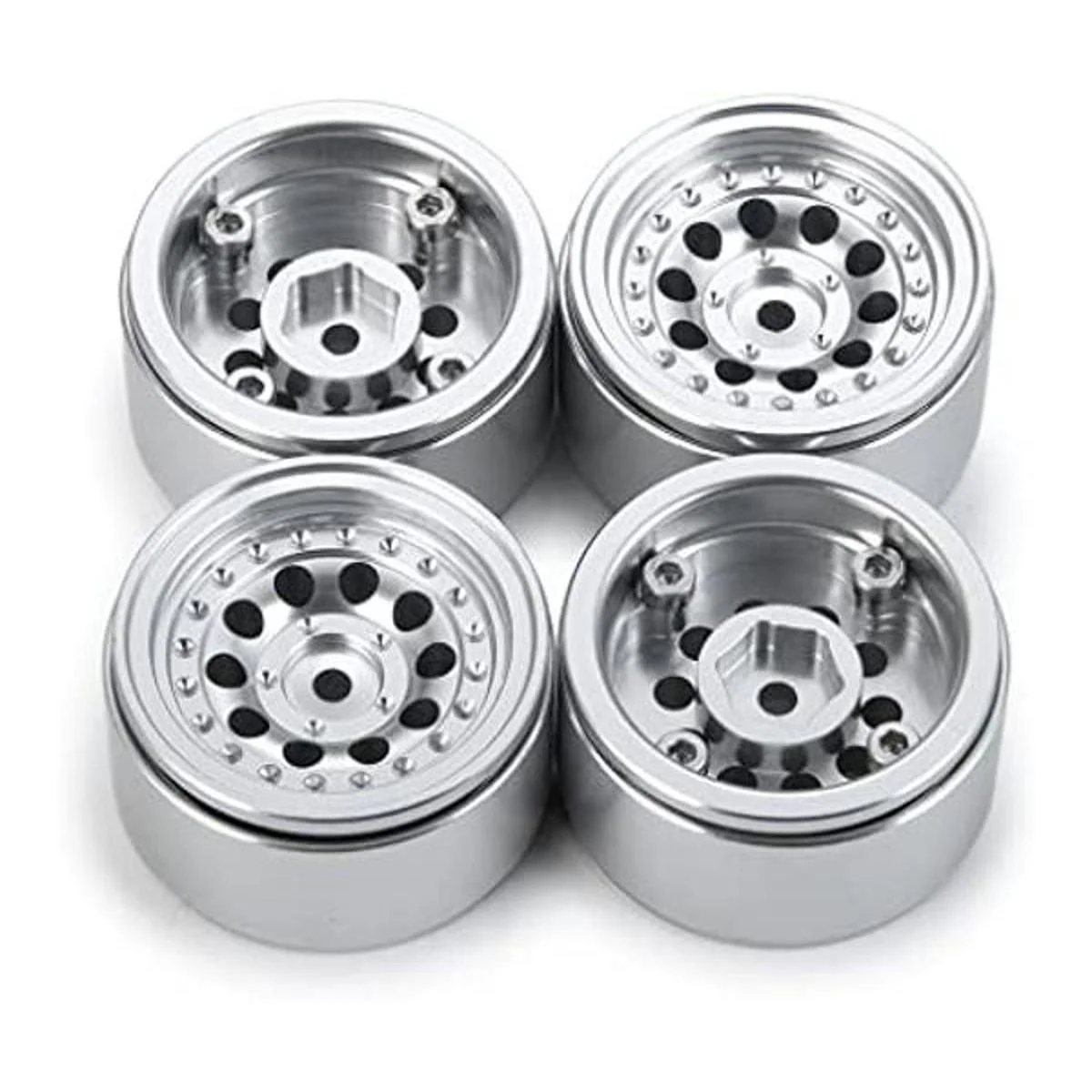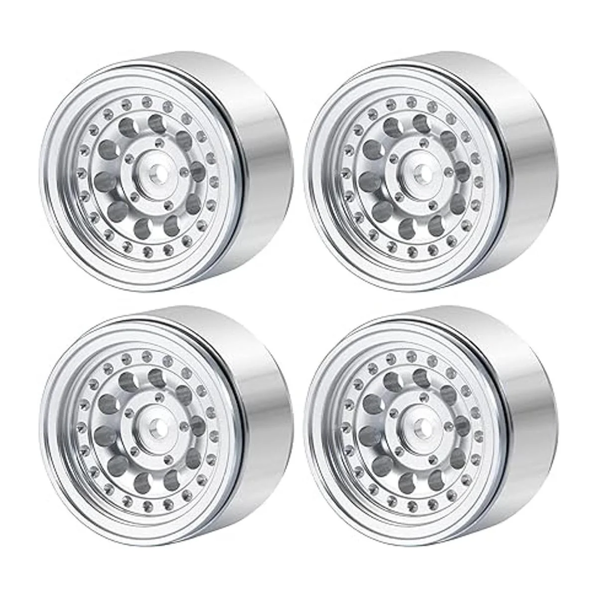 MORLORDY 4 llantas de aleación de aluminio RC de 1.0 pulgadas Beadlock para 124 RC Crawler Car SCX24 Wheels Upgrades Deadbolt AXI90081 AXI0001 AXI0002 Accesorios Juego de cubos de rueda de metal plata