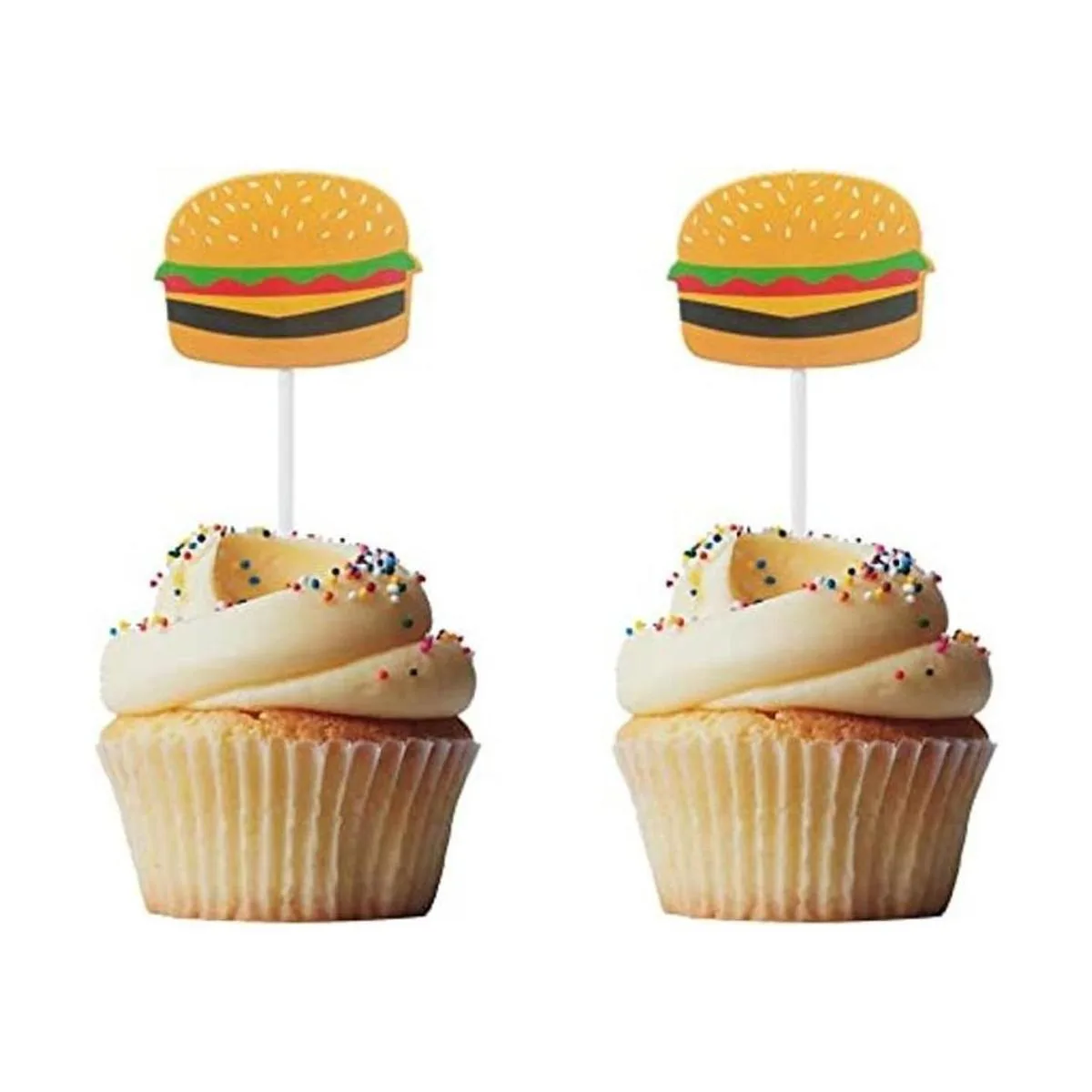 Morndew 24 piezas Hamburger barbacoa queso hamburguesa cupcakes Toppers para Barbeque Tema fiesta cumpleaños fiesta boda fiesta decoraciones