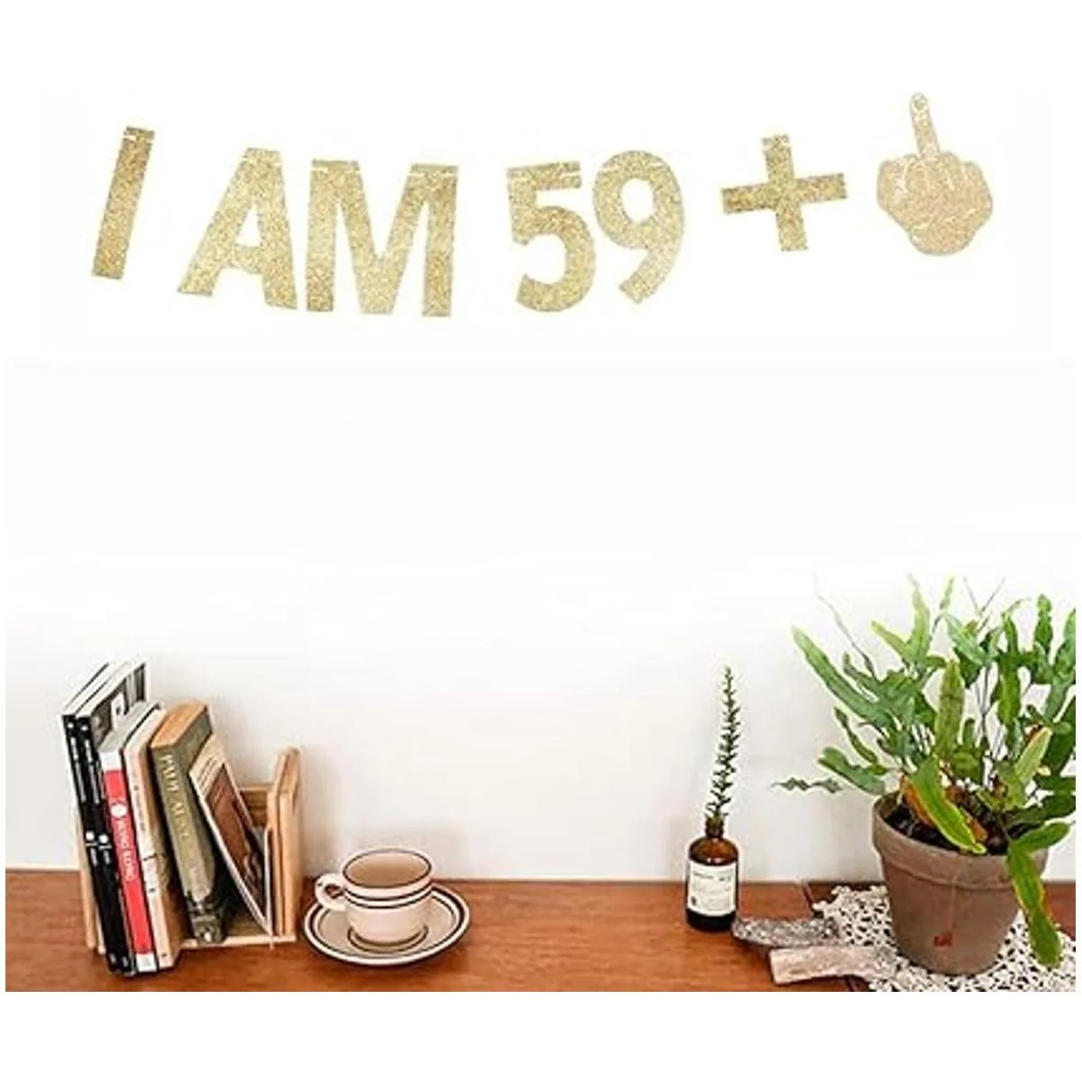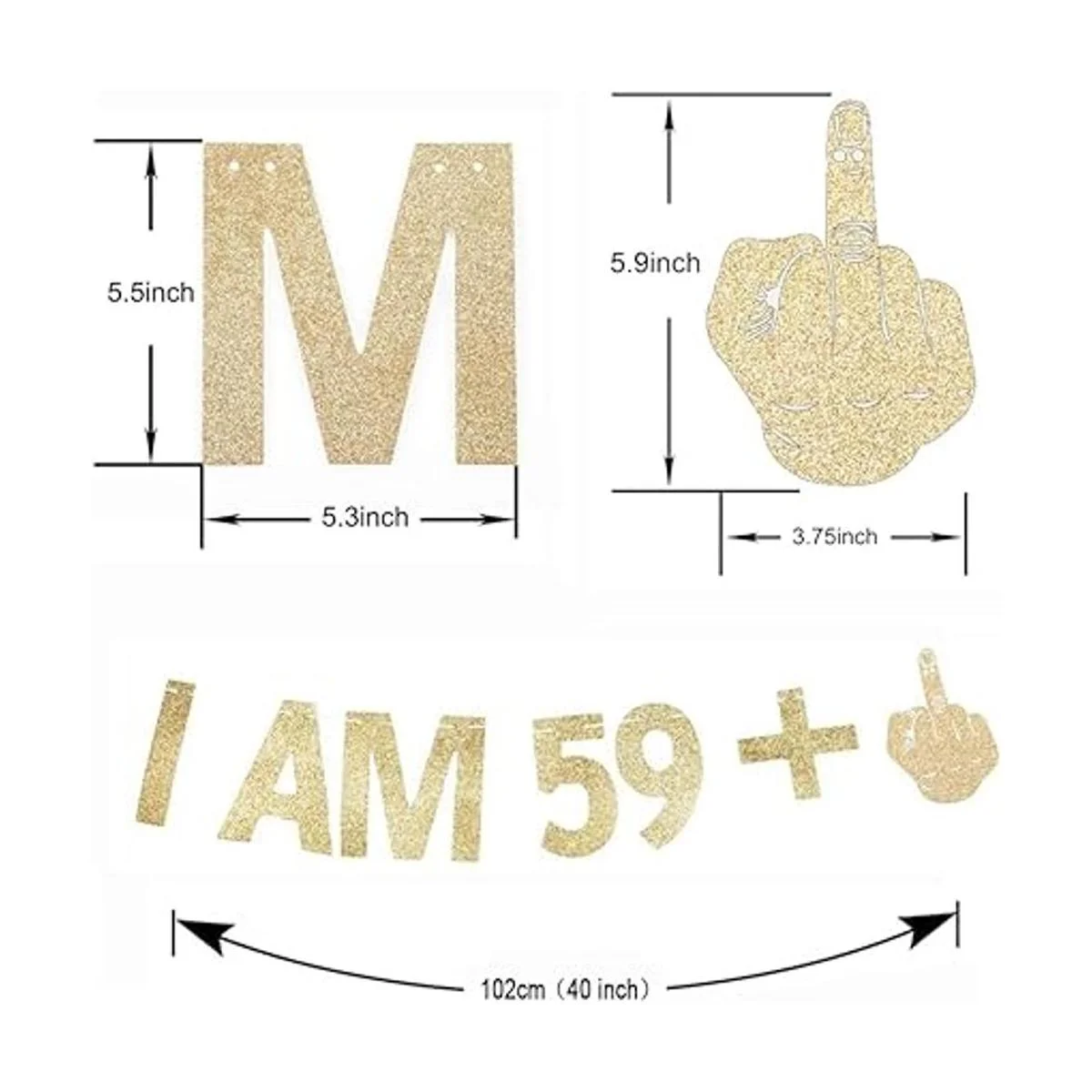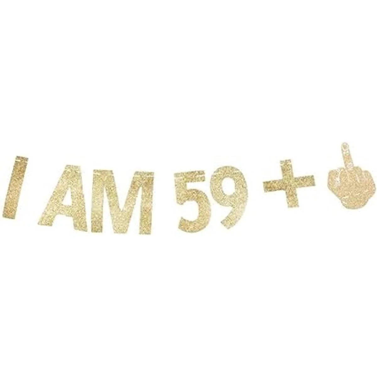 Morndew Cartel de papel dorado con purpurina I AM 591 para 60 cumpleaños Party Sign telones de fondo divertidomordaza 60 Bday Party Wedding Anniversary Celebration Party Retiro Party Decoraciones