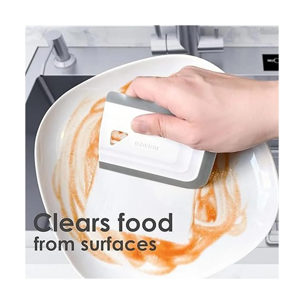 Escobilla de cocina perfecta, bordes flexibles de silicona que eliminan eficazmente los restos de alimentos de platos y cuencos. La forma curvada entra en cuencos fácilmente. Así que puedes reducir la cantidad de agua necesaria para lavar los platos.