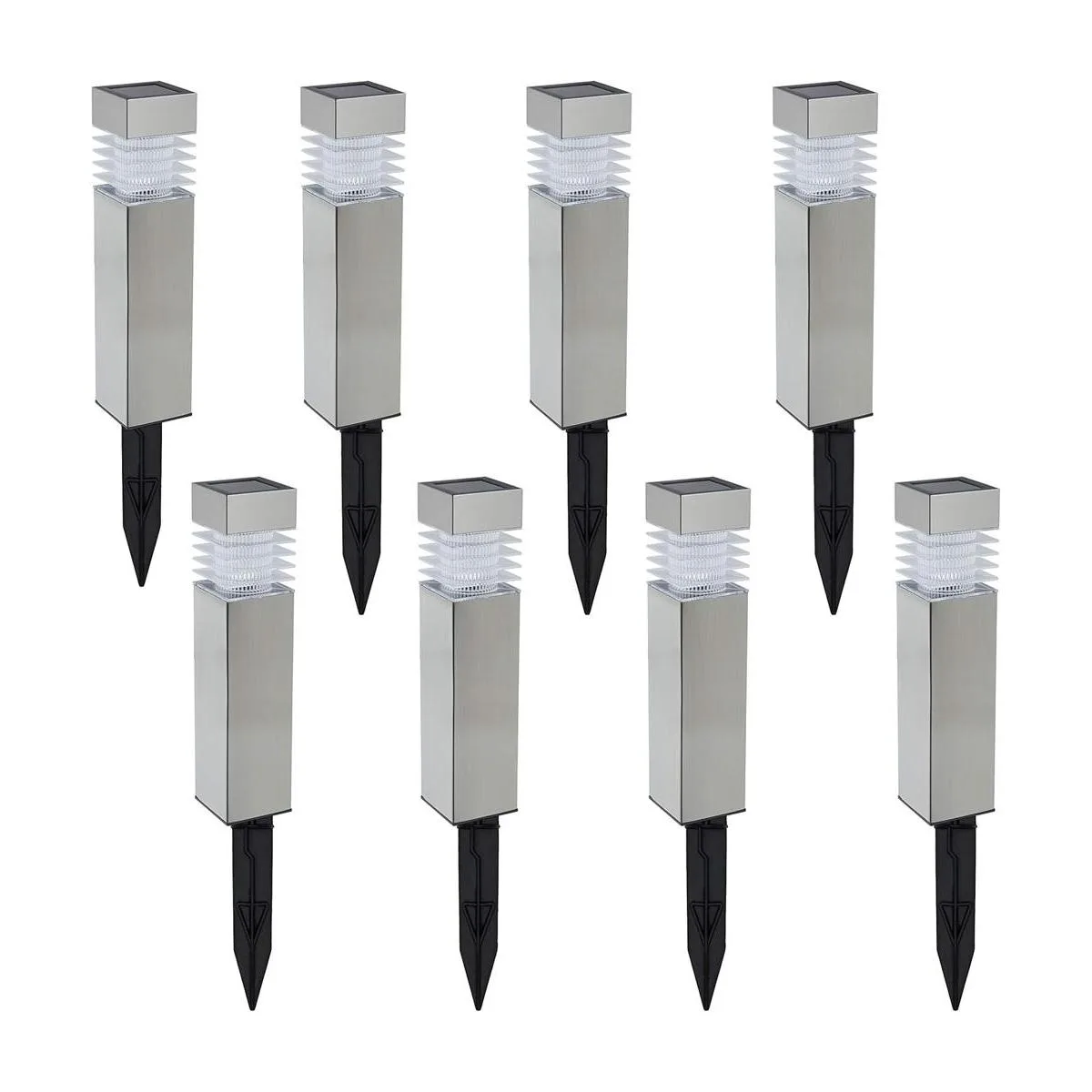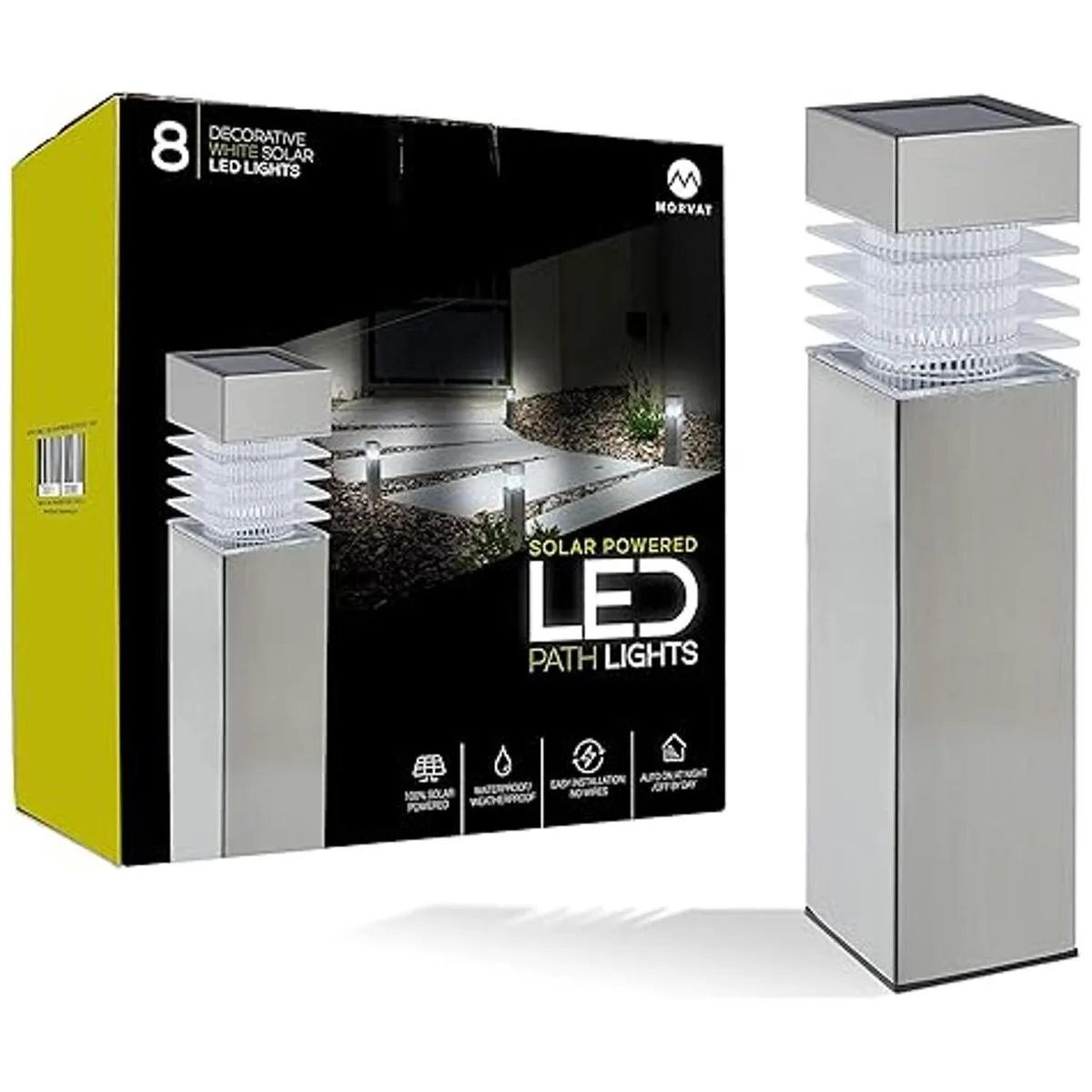 Morvat Luces solares LED para camino, luces solares para camino, luces solares para camino, luces solares para patio, acero inoxidable y plástico duradero, impermeable, luz blanca, paquete de 8