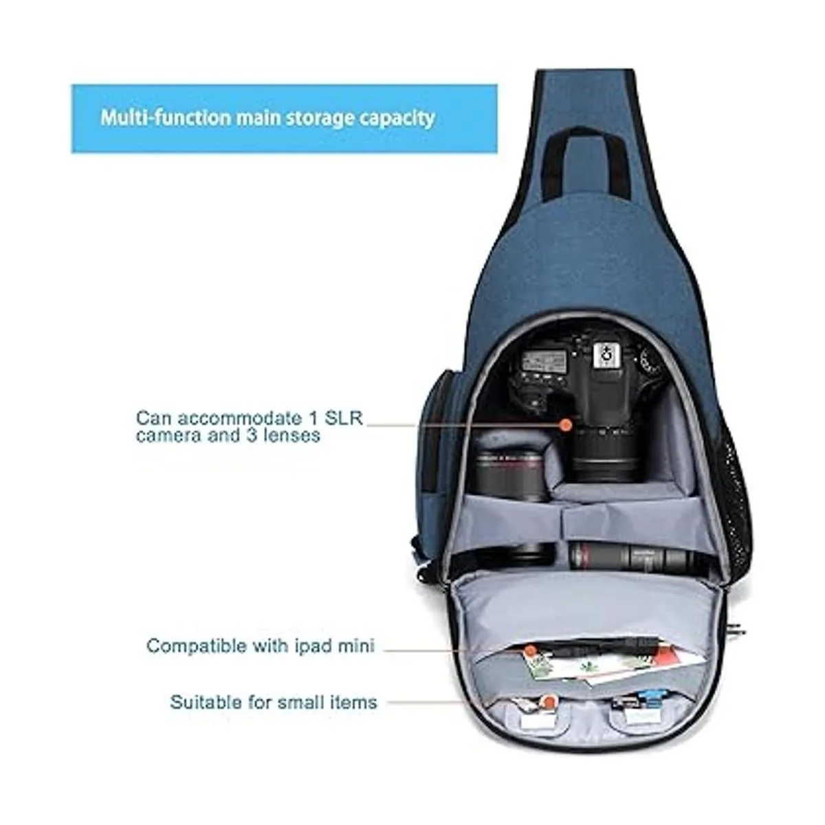 MOSISO Bolsa de cámara con eslinga, funda de cámara completamente abierta con soporte para trípode, cubierta de lluvia e inserto modular para cámara DSLRSLRsin espejo, compatible con CanonNikonSonyFuji, color azul azulado