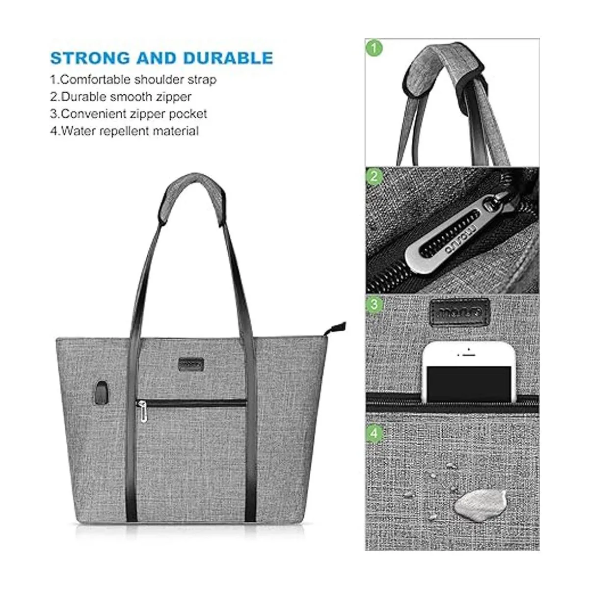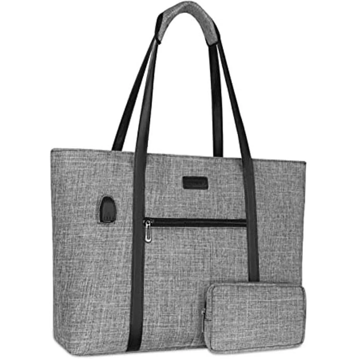 MOSISO Bolsa de mano para laptop con puerto USB para mujer, compatible con MacBook, cuaderno y Chromebook de 17 a 17.3 pulgadas, organizador ligero, maletín de trabajo, viajes, negocios con bolso pequeño, gris
