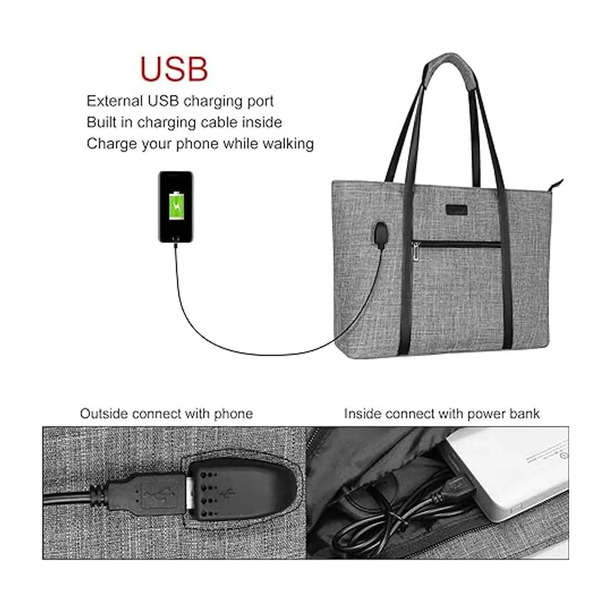 Perfecto para uso diario, uso casual y uso profesional también, cómodo y cómodo. Con puerto de carga USB integrado en el exterior y cable de carga integrado en el interior, esta bolsa para portátil te ofrece una manera conveniente de cargar tu teléfono mientras caminas. Ten en cuenta que esta bolsa para portátil no se alimenta por sí misma, el puerto de carga USB solo ofrece un fácil acceso al dispositivo de carga.