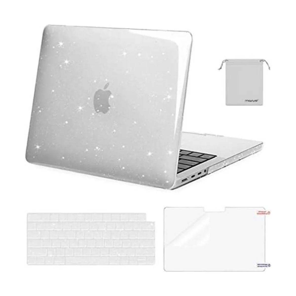 MOSISO Compatible con MacBook Pro de 14 pulgadas 2021 2022 versión A2442 con M1 ProM1 Max Chip Touch ID, carcasa dura de plástico brillante con purpurina y funda de teclado, protector de pantalla y bolsa de almacenamiento, transparente