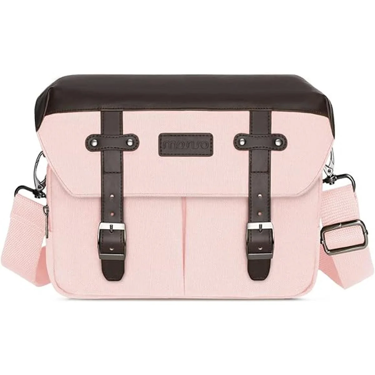 MOSISO Funda cruzada para cámara de hombro, DSLRSLRFotografía sin espejo, bolsa vintage de piel sintética con tapa de lluvia compatible con cámara y lente CanonNikonSony, rosa