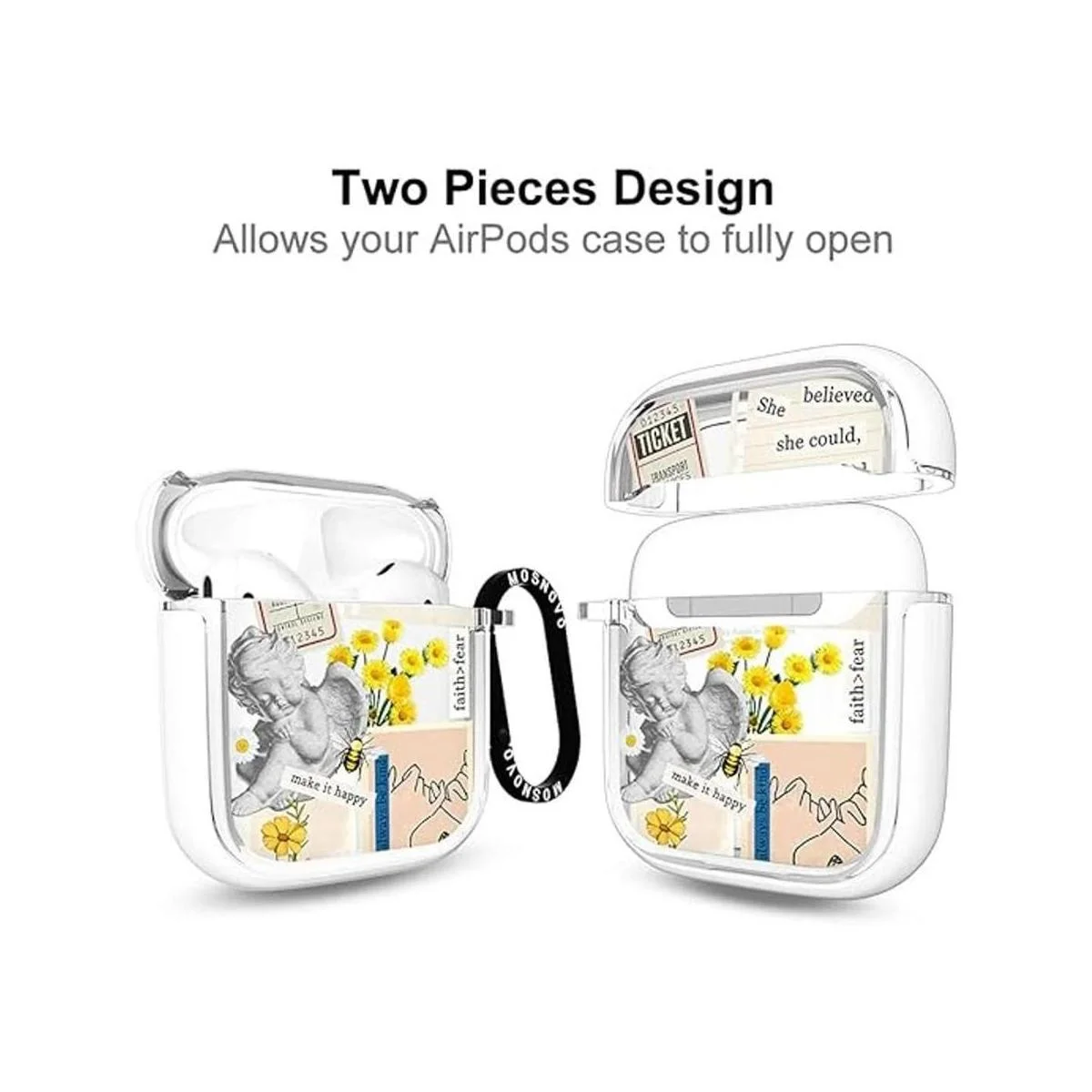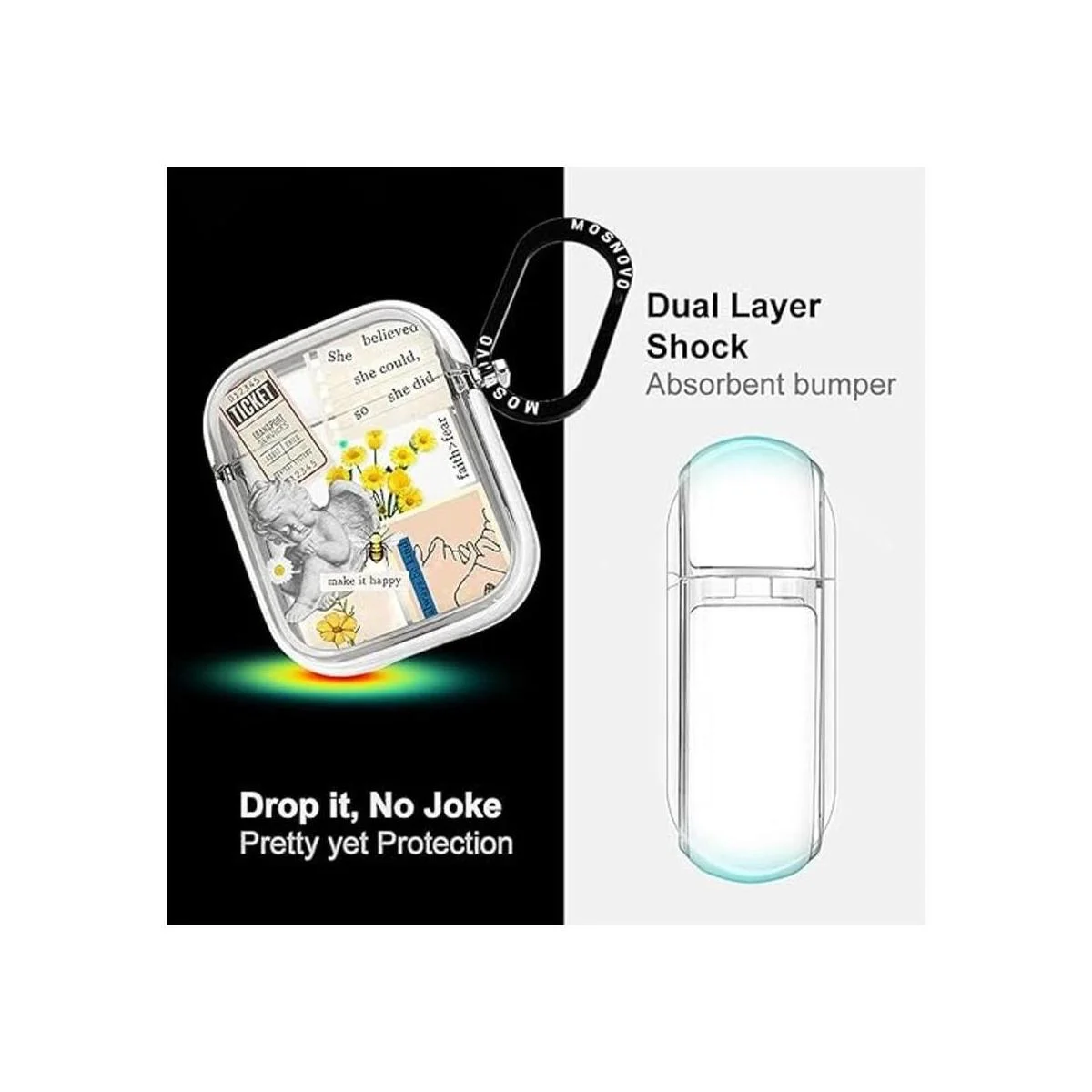 MOSNOVO Funda para AirPods de Apple, funda para AirPods 1 y 2, diseño vintage de collage con diseño de funda delgada a prueba de golpes, funda protectora rígida de doble capa para niñas y mujeres