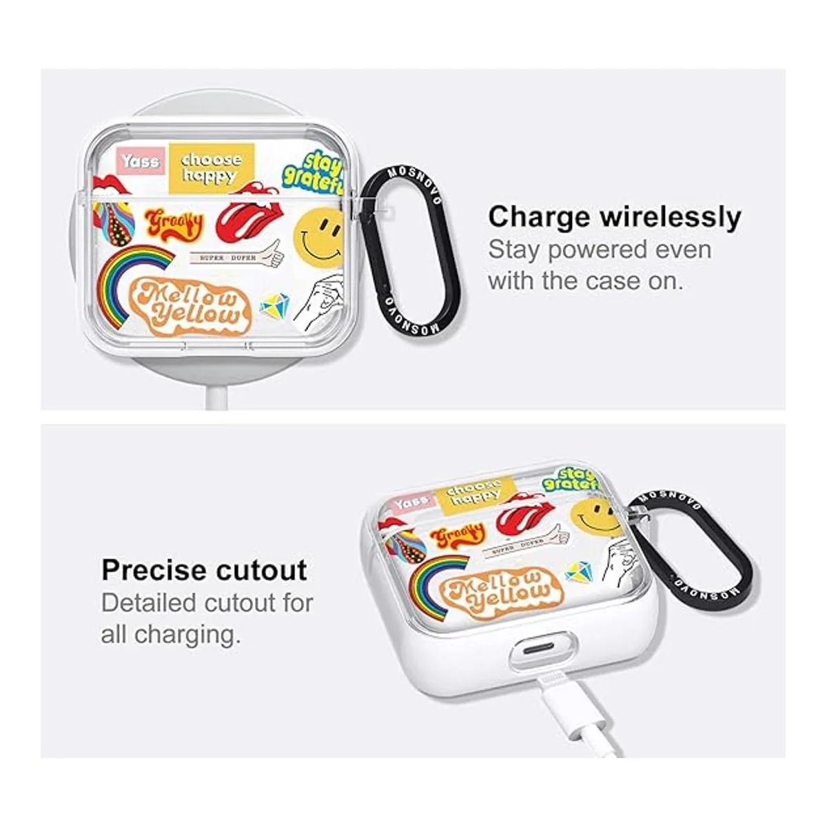 MOSNOVO Funda para Apple Airpods 3, funda para Airpods 3, diseño fresco de cultura pop y transparente, diseño fresco, absorción de golpes, funda para AirPods de 3 generación