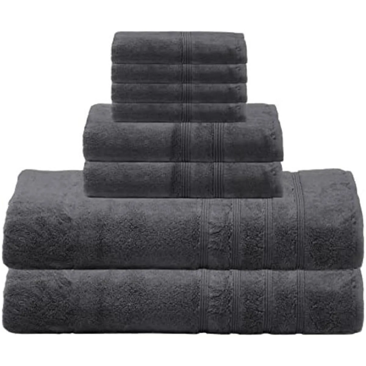 El juego incluye 2 toallas de baño XL de 35 x 70 pulgadas, 2 toallas de mano de 16 x 30 pulgadas y 4 paños faciales de 13 x 13 pulgadas