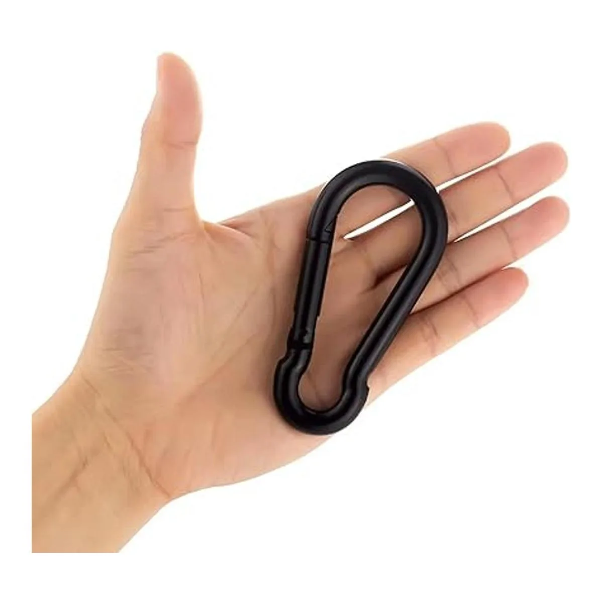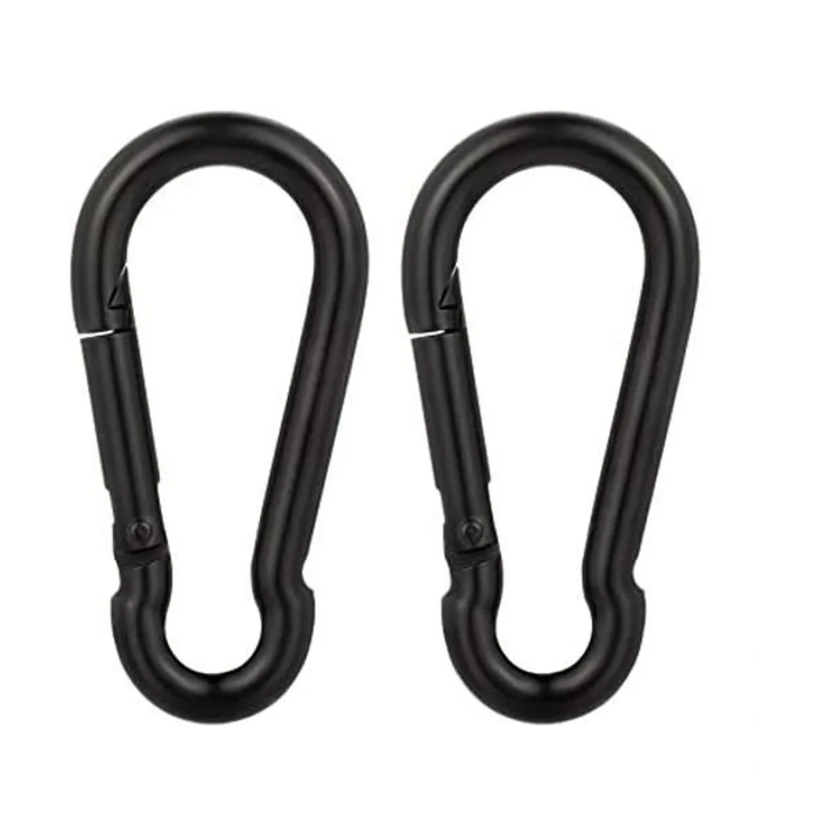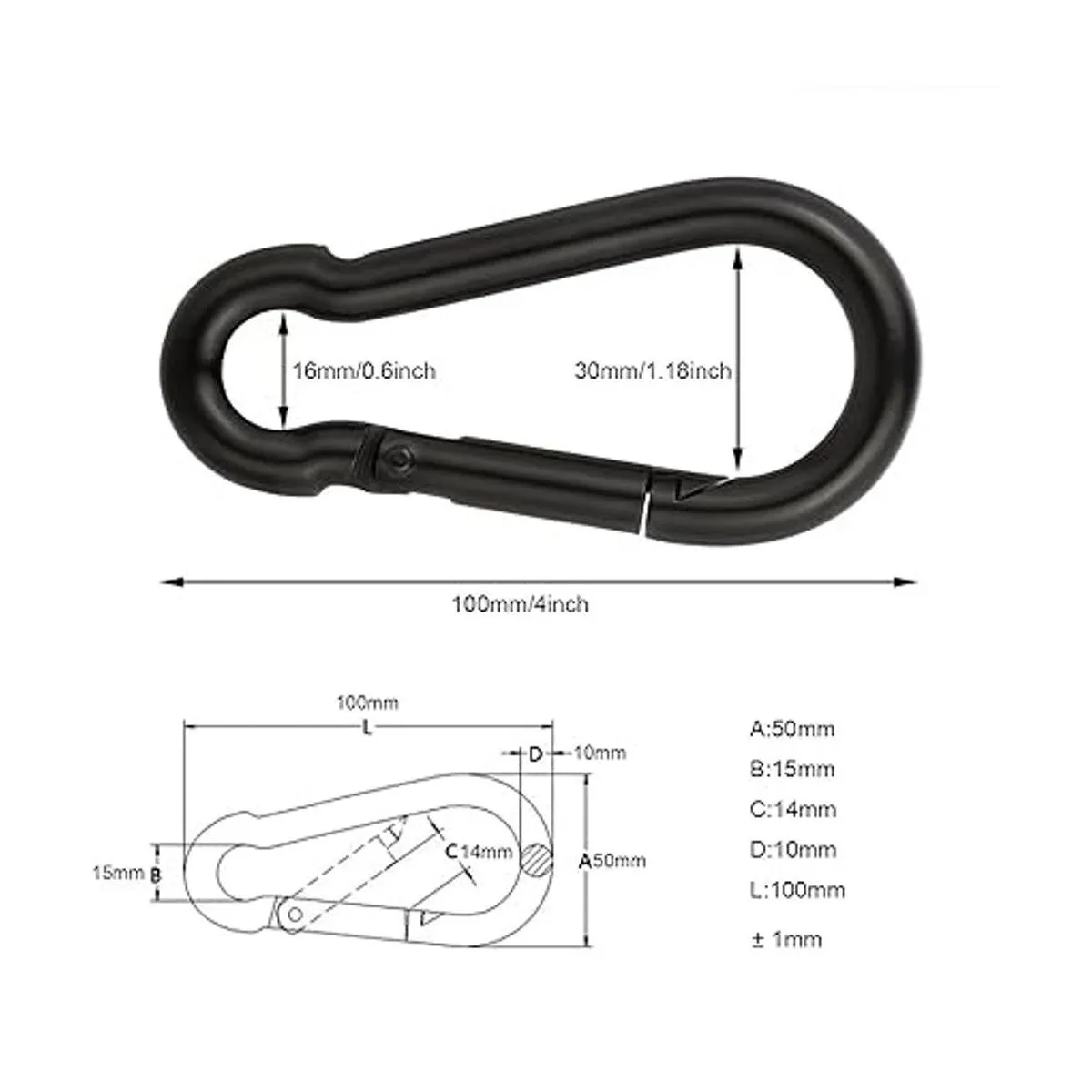 Mosquetón de 0.394 x 3.937 in, gancho de resorte con clip de acero resistente, color negro, 2 piezas para hamacas, sacos de boxeo, sillas de columpio, equipo de gimnasio, camping, senderismo