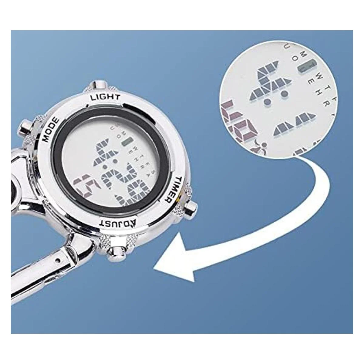 Reloj de mosquetón, reloj de clip con la función de brillo por la noche, puedes ver fácilmente la hora incluso en la oscuridad.