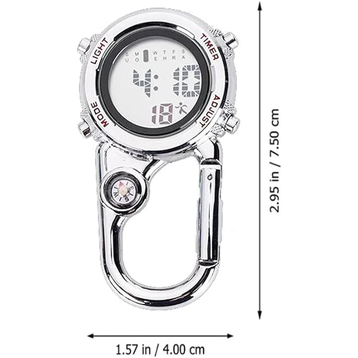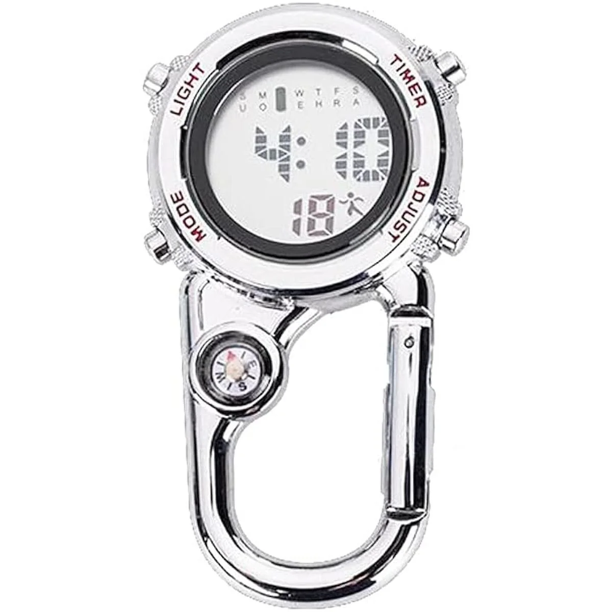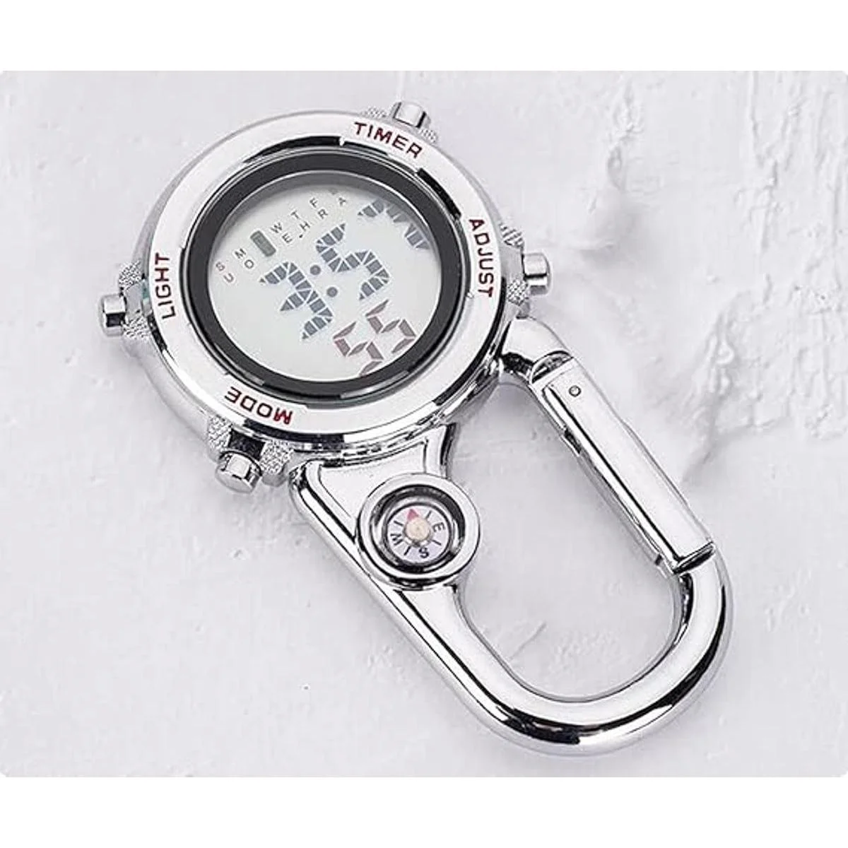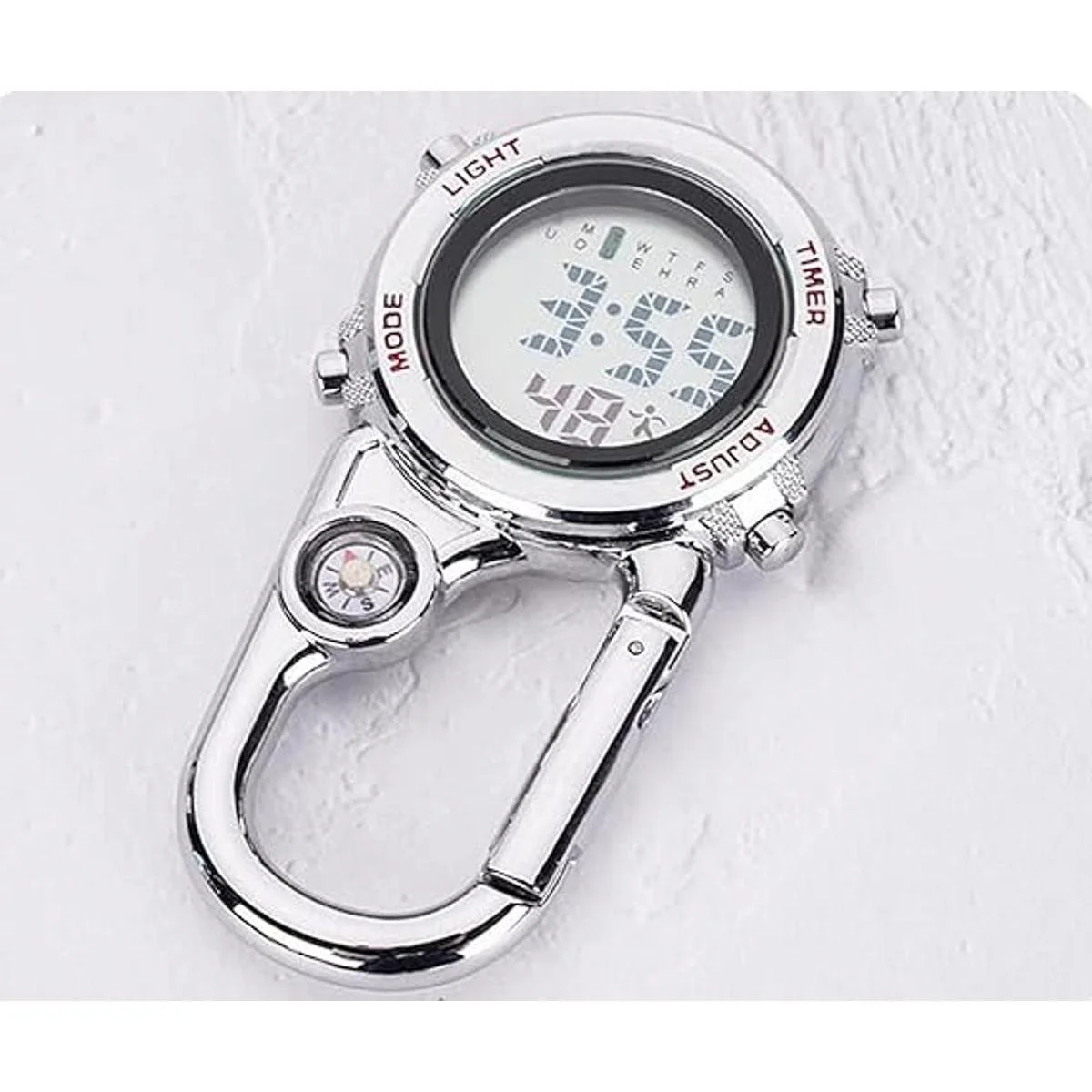 Mosquetón digital con clip, correa impermeable y a prueba de golpes, reloj de cuarzo con clip que brilla en la oscuridad con brújula, reloj despertador, fecha y semana para deportes al aire libre