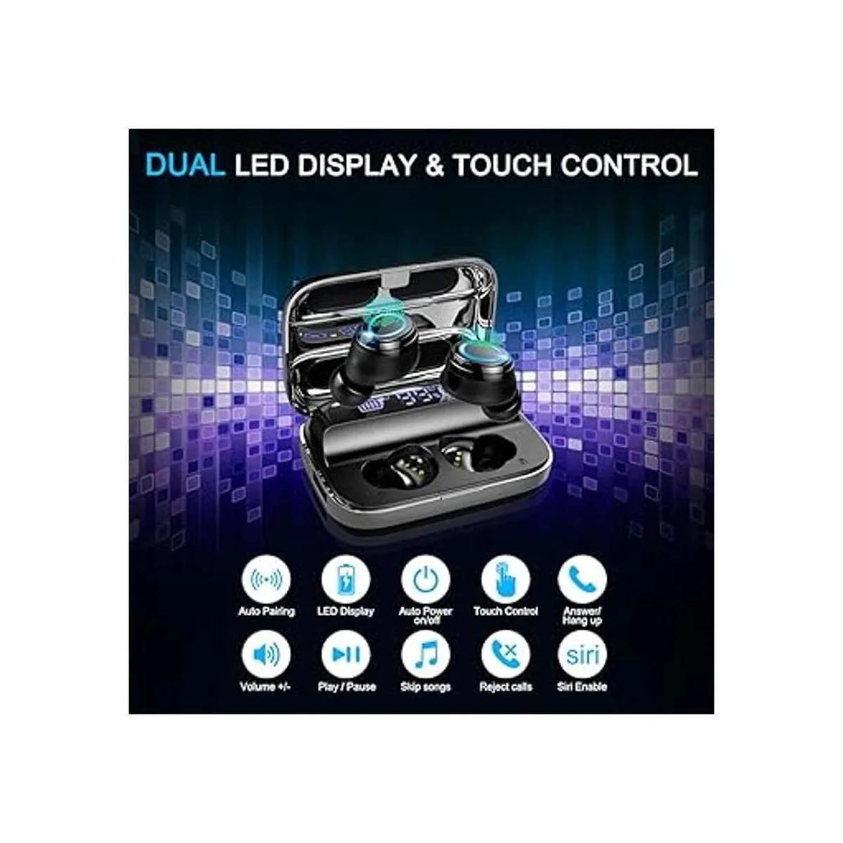 Emparejamiento de un solo paso y control táctil inteligente: simplemente recoge 2 auriculares Bluetooth inalámbricos de la caja de carga, se conectarán entre sí y se conectarán al último dispositivo emparejado automáticamente. Con la pantalla táctil de alta tecnología, puedes responder llamadas, colgar, reproducir/pausar música, ajustar el volumen, cambiar canciones y activar Siri con solo un toque de tus auriculares Bluetooth inalámbricos.