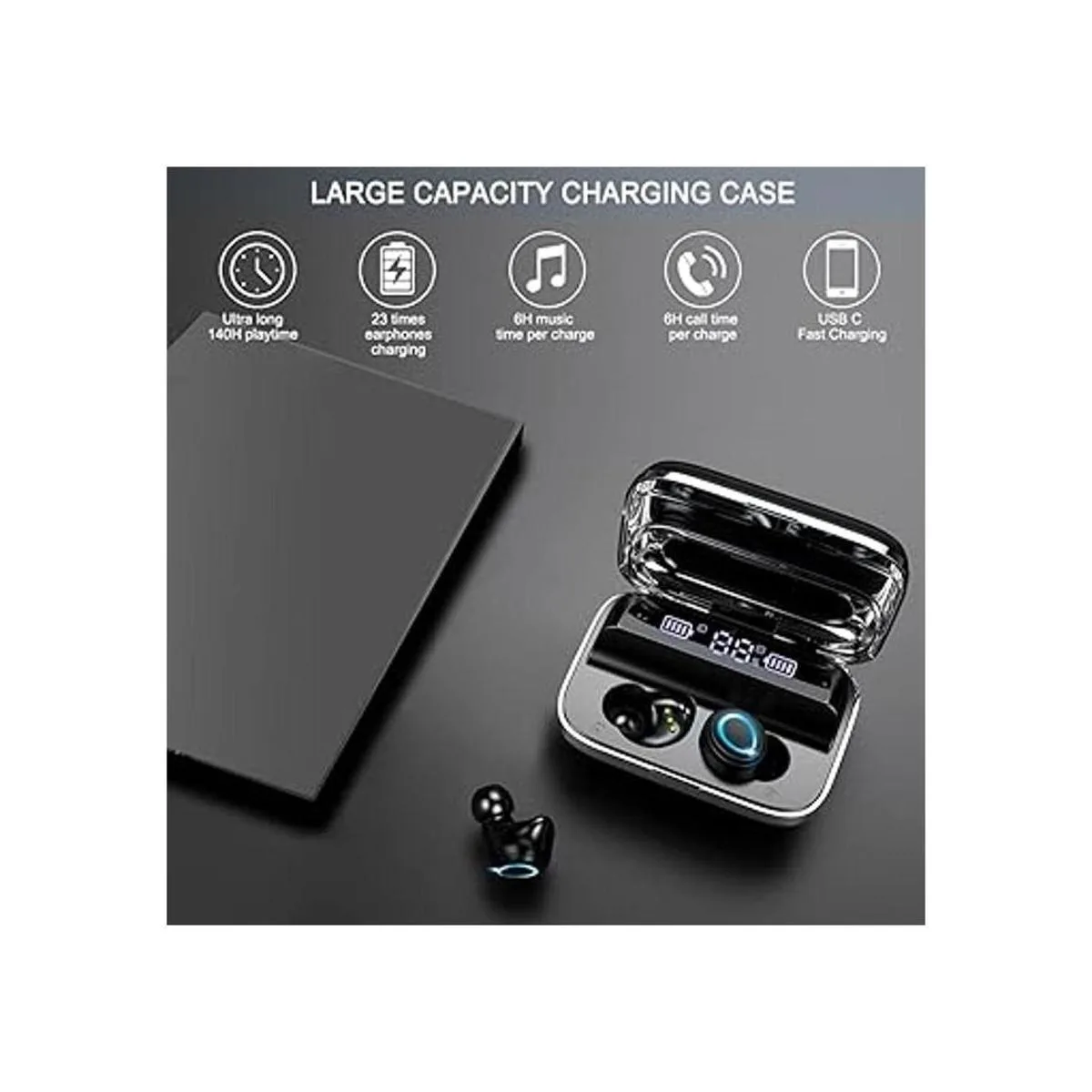 Tiempo de reproducción de 140 horas y funda de carga portátil: los auriculares inalámbricos Bluetooth pueden reproducir durante 6 horas con una sola carga, la funda de carga puede recargar los auriculares Bluetooth alrededor de 23 veces, proporcionando 140 horas de reproducción adicionales. Con tecnología USBC, solo tarda 1,5 horas cada carga completa para la funda. Ideal para deportes diarios, entrenamiento, viajes, etc.