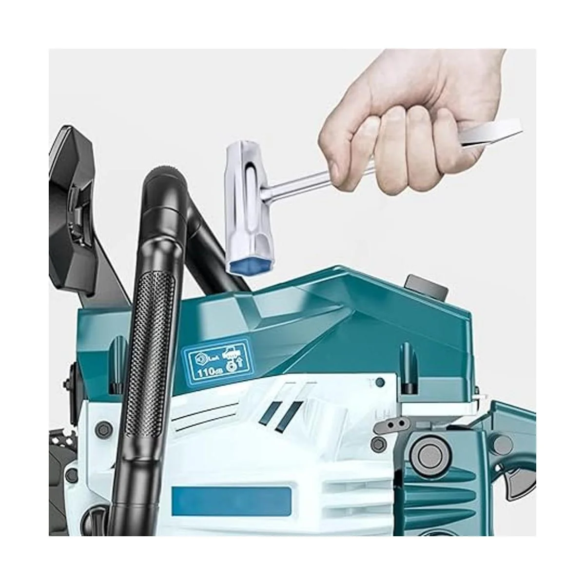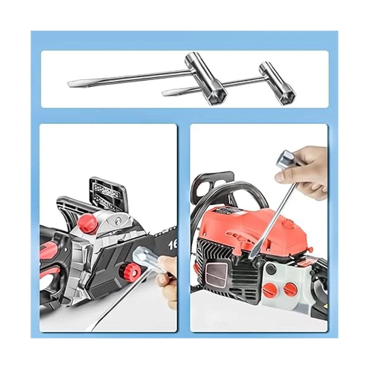 Función: la llave de sierra de cadena de repuesto está diseñada con dos extremos, el extremo del destornillador se puede atornillar en el tornillo ranurado, la boca de la llave puede fijar y aflojar bien el tornillo redondo, el enchufe de diferentes tamaños puede ser adecuado para diferentes tipos de tornillos