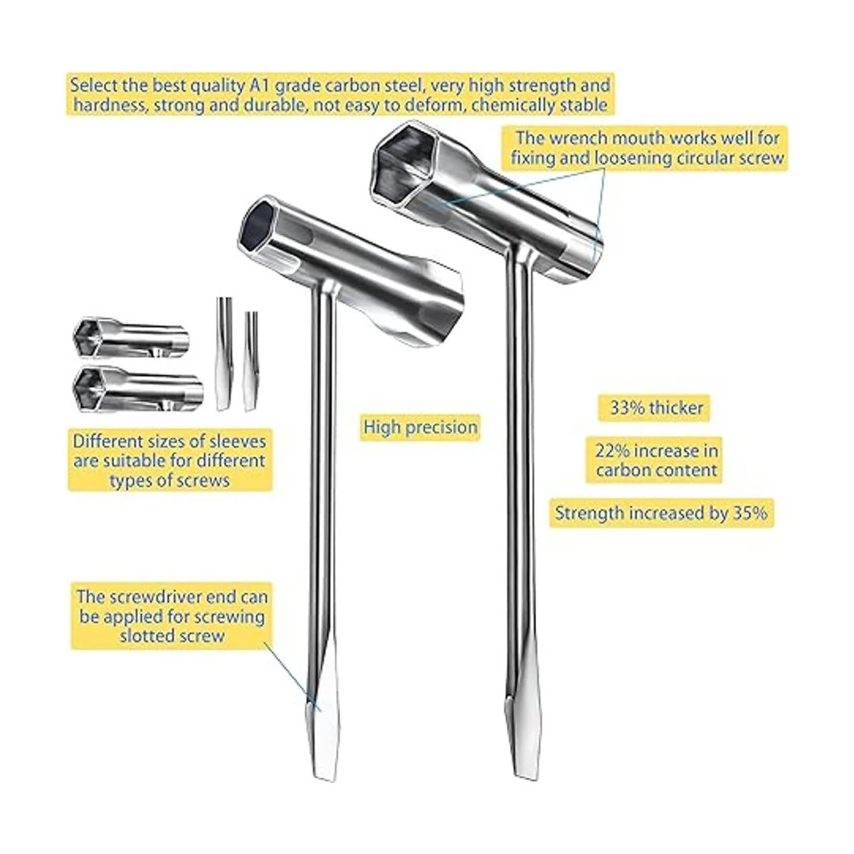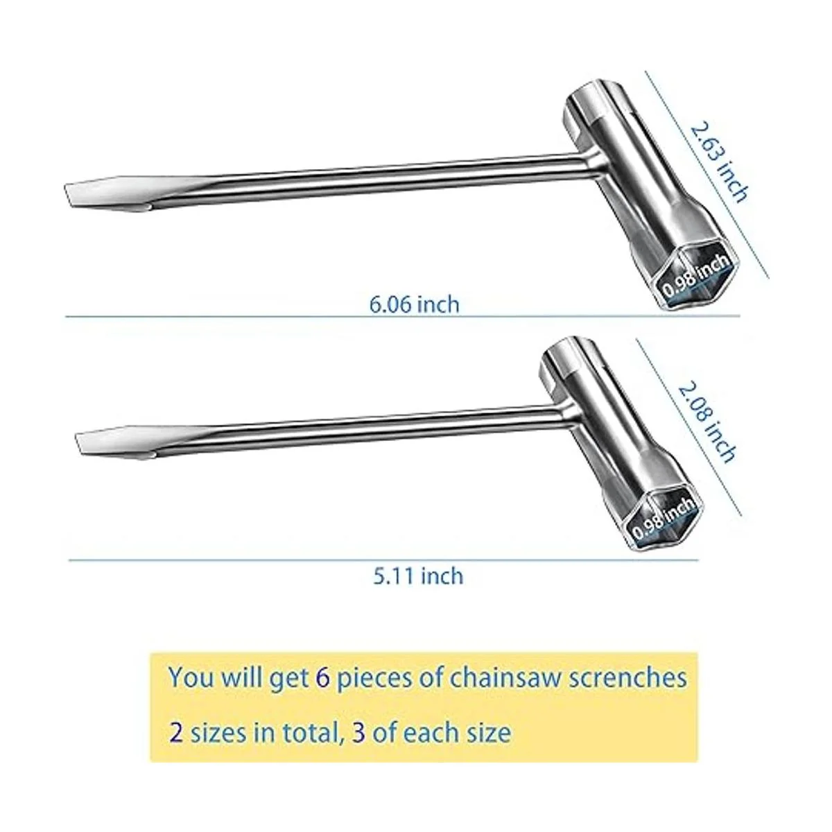 MotBach Paquete de 6 herramientas de repuesto para rascador de motosierra, llave de motosierra de 0.512 x 0.748 in, herramienta de llave en T de tamaño largo y corto, herramienta de combinación de destornilladores y llaves, tamaño largo y corto