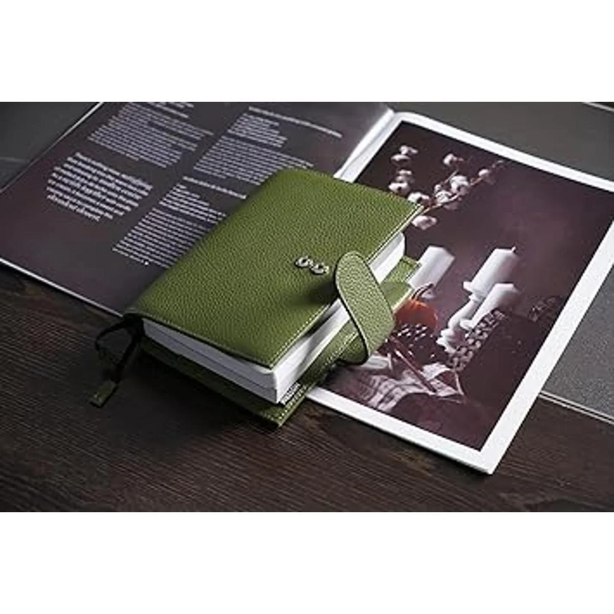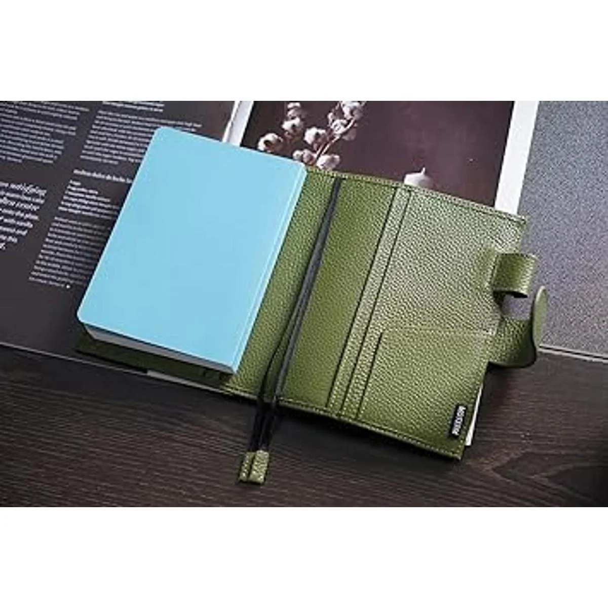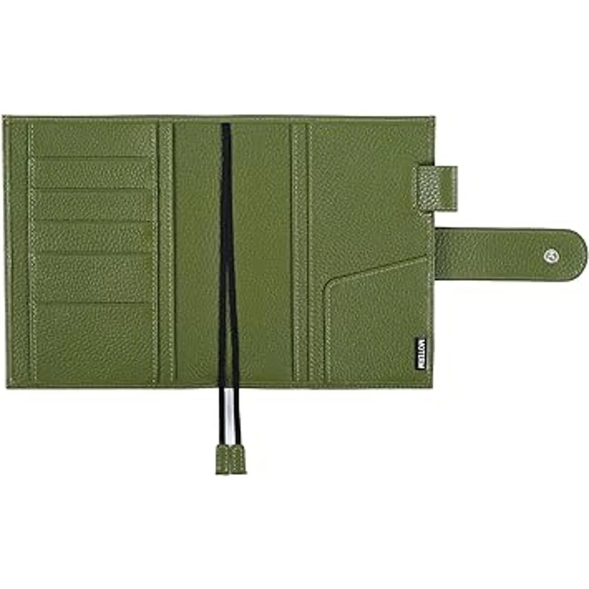 Moterm Funda de cuero para cuadernos A6 Se adapta a planificadores Hobonichi, Stalogy y Midori MD con bucle para bolígrafo, ranuras para tarjetas y bolsillo trasero verde oliva, A6