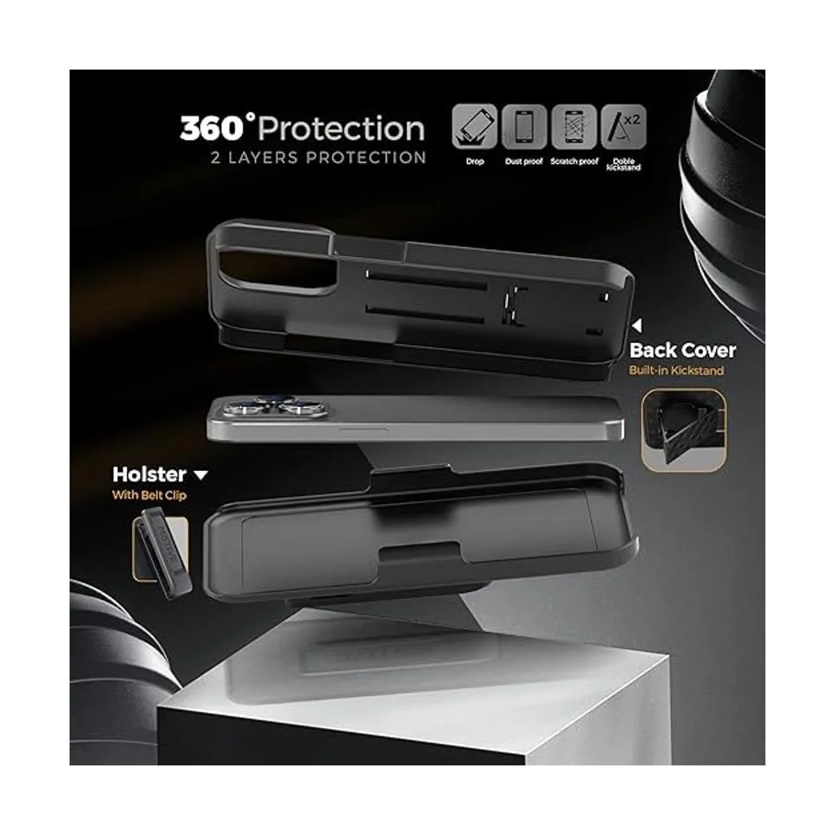 Funda para iPhone a prueba de golpes. Nuestra funda para iPhone 14 Pro Max supera los estándares militares gracias a 4 capas de protección, incluyendo un marco interior caído, placa trasera de policarbonato duro, espuma resistente a los arañazos y parachoques exterior de TPU. La tecnología AirPocket alrededor de todo el perímetro y la parte posterior de la funda proporciona una absorción de impactos de vanguardia. Probado casi 50 veces desde al menos 15 pies