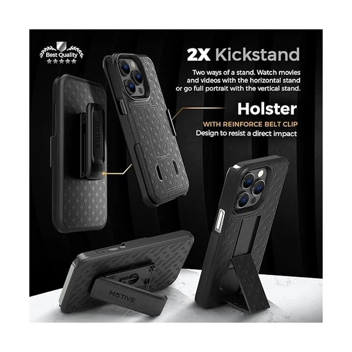 MOTIVE Funda para iPhone 14 Pro Max, funda con clip para cinturón para Apple iPhone 14 Pro Max, funda de carcasa combinada 14 Pro Max, funda protectora delgada y resistente a prueba de golpes, soporte de 6.7 pulgadas PM Serie Ranger