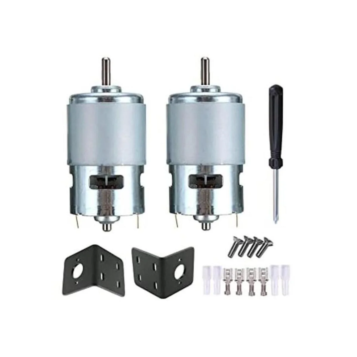 Motor de corriente continua de 775 CC de 12 V 24 V máximo 12000 RPM, rodamiento de bolas de gran par de torsión de alta potencia y bajo ruido, motor de componentes electrónicos, paquete de 2 unidades con soporte