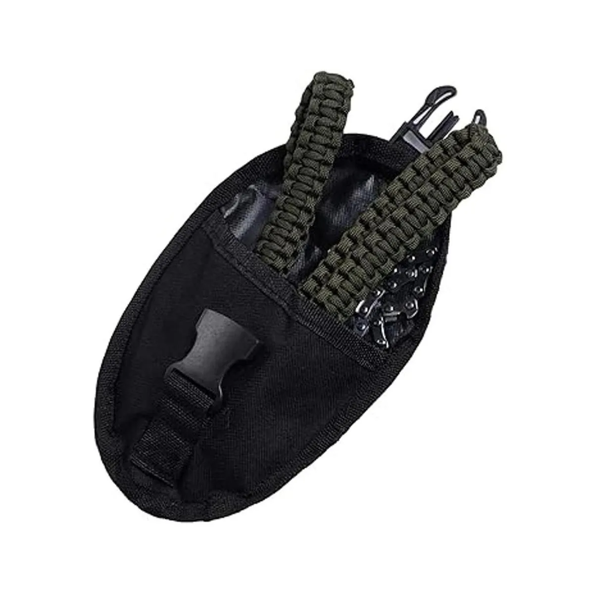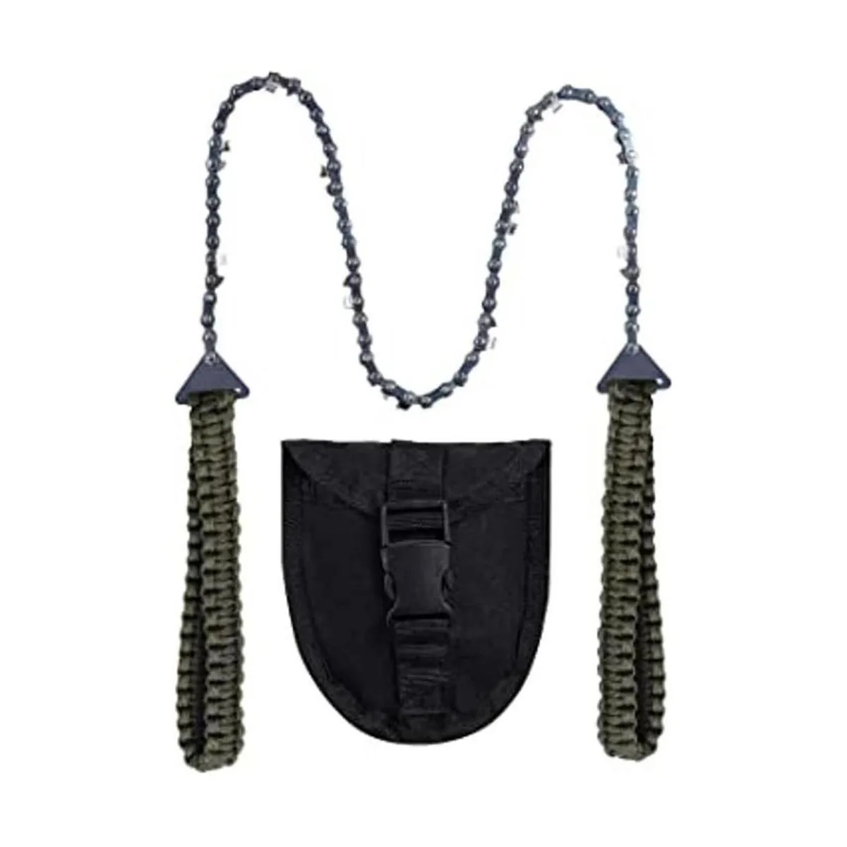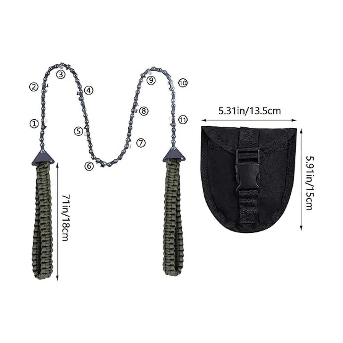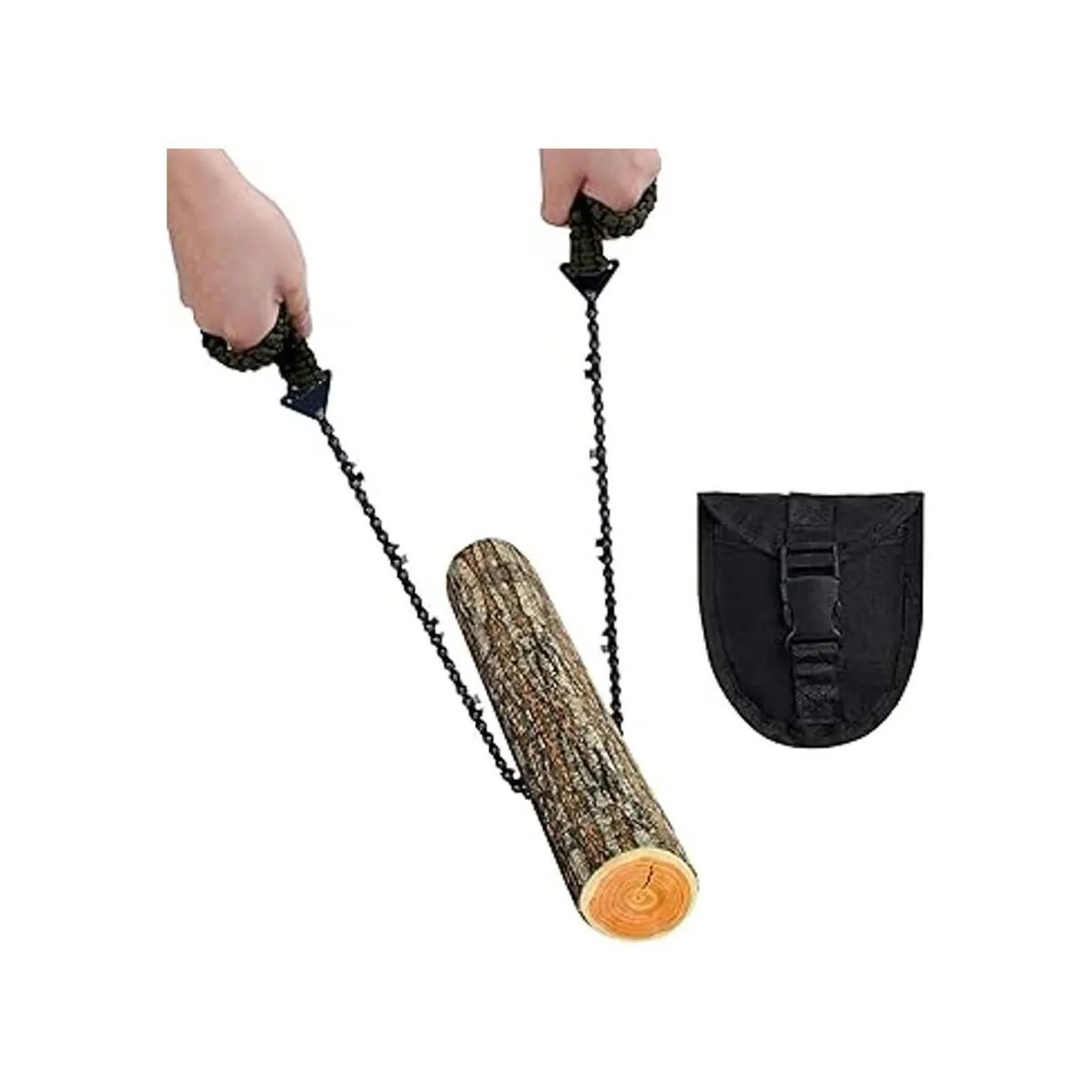 Motosierra de bolsillo con mango de paracaídas, sierra de mano de cadena plegable, equipo de supervivencia de emergencia al aire libre para campamento, caza, senderismo, corte de madera y árbol 26 pulgadas 11 dientes