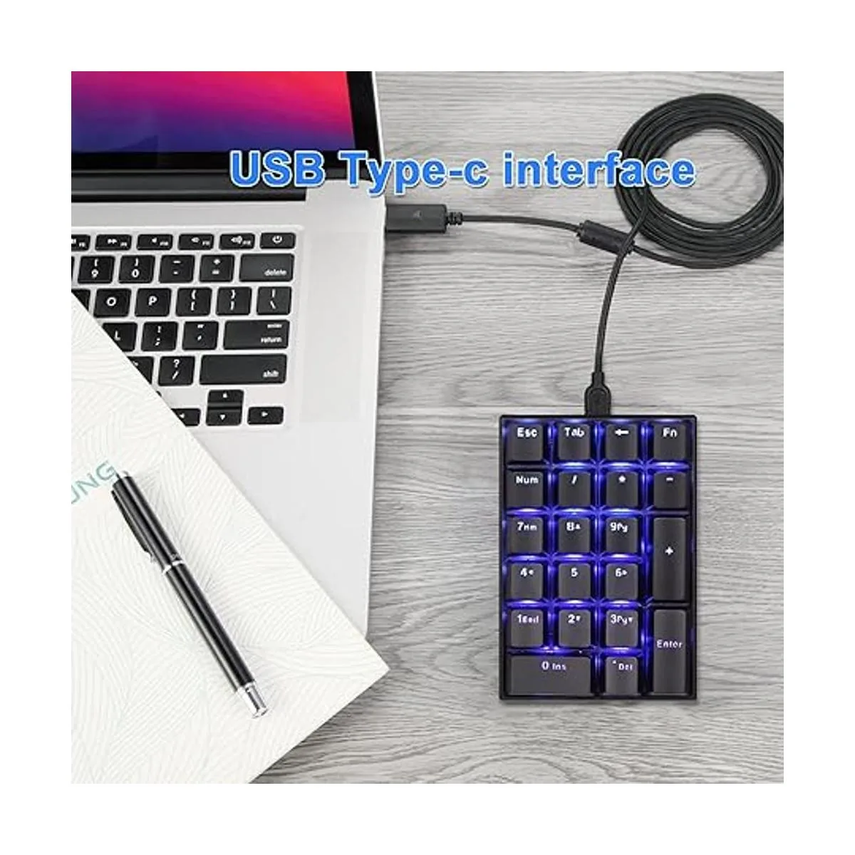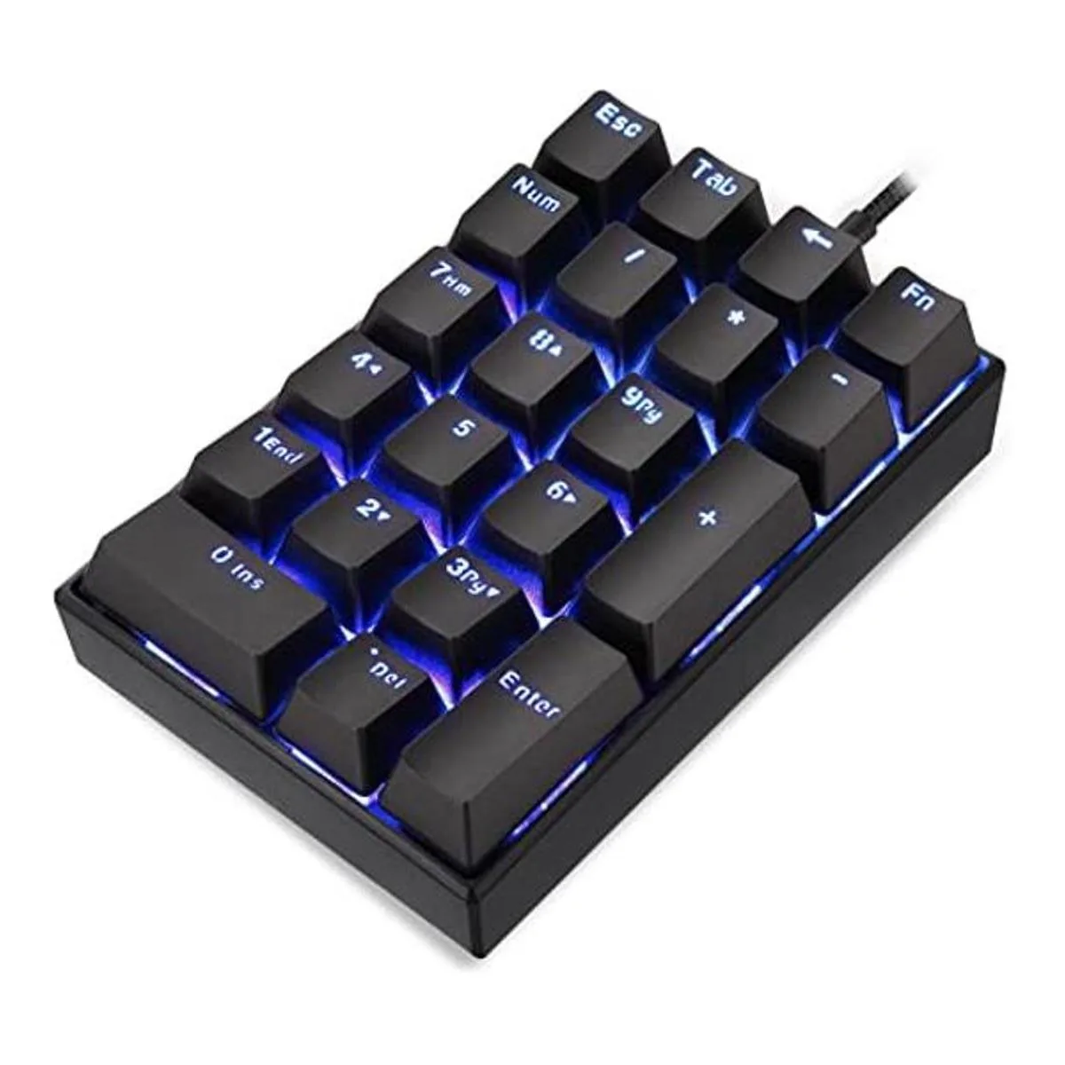 Motospeed K23 Teclado numérico mecánico con cable de 21 teclas, mini numpad, teclado portátil retroiluminación para juegos, diseño extendido para cajero
