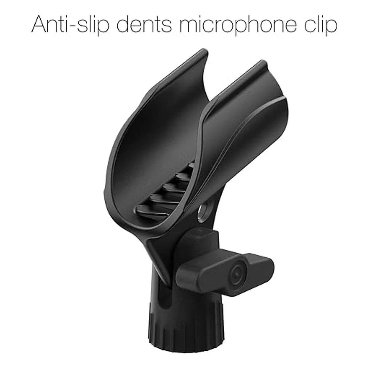Compatibilidad: el soporte de micrófono viene con un clip de micrófono antideslizante y un adaptador de metal de 3/8 a 5/8, que es compatible con la mayoría de los tipos de micrófonos.