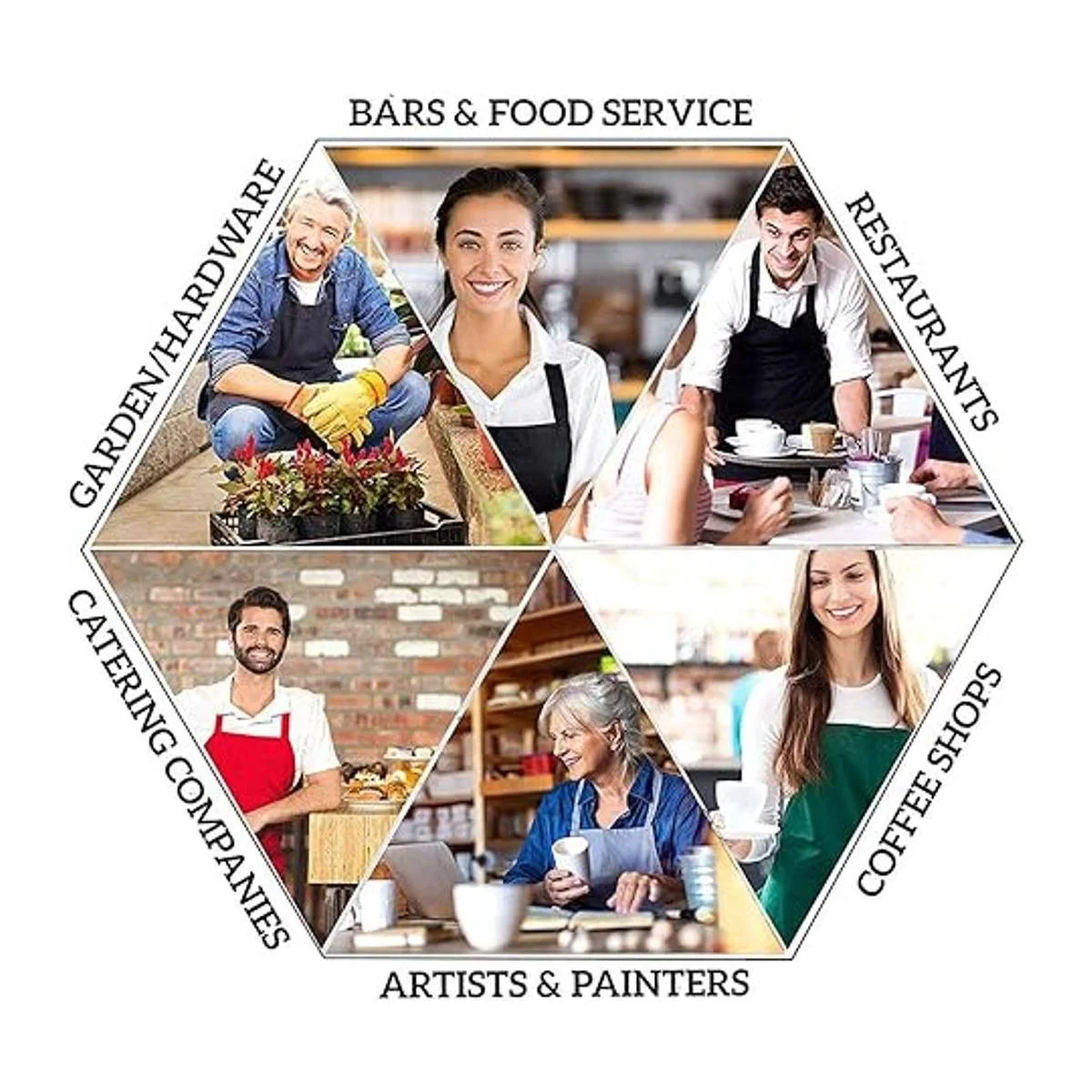 Ocasión: perfecto para uso en interiores y exteriores. Delantal perfecto para cocinar, hornear, manualidades, jardinería, barbacoa, restaurante comercial, cafetería, tienda de uñas, tienda de belleza, cocina, hotel, cafetería, bar o cocina comercial, también es un regalo de recuerdo.