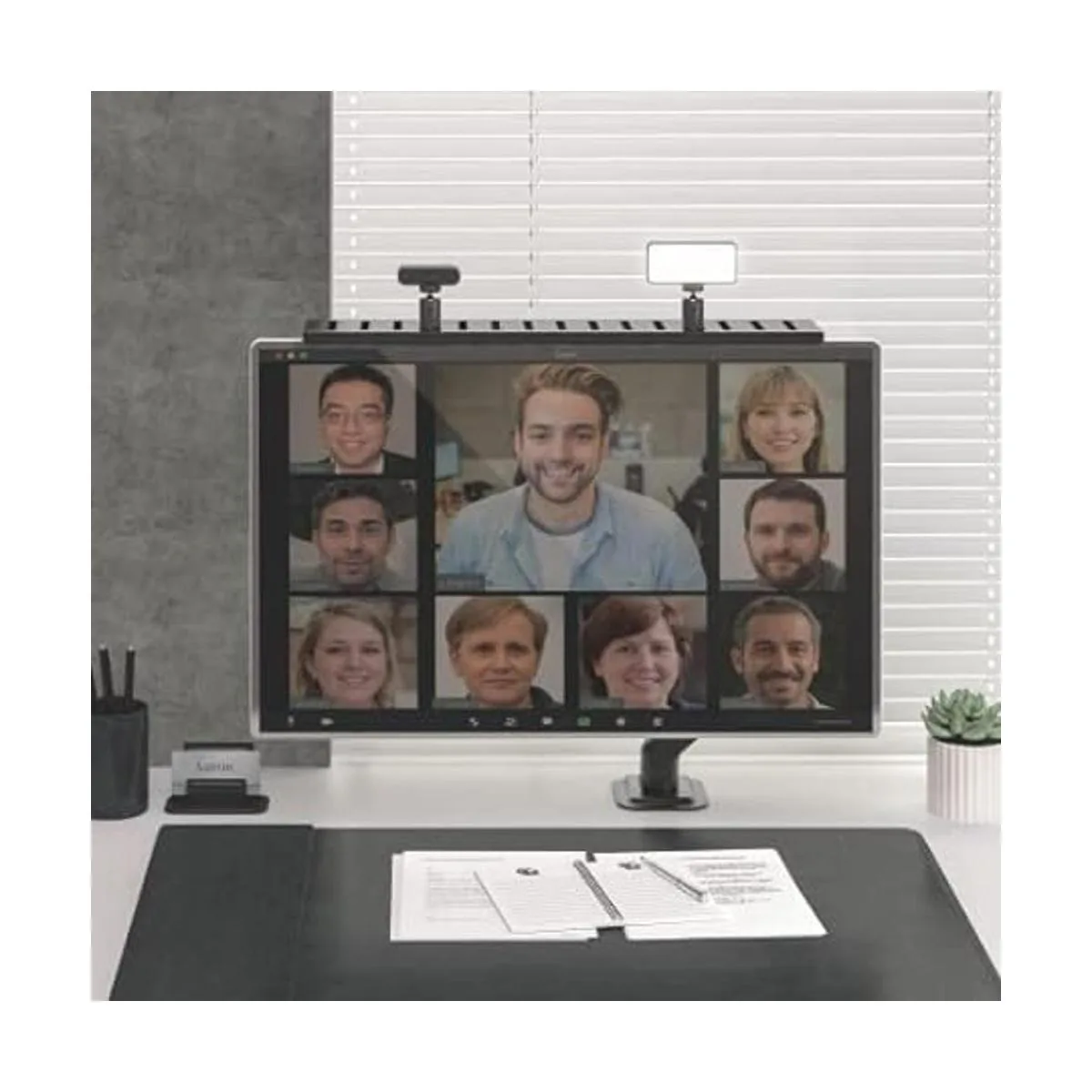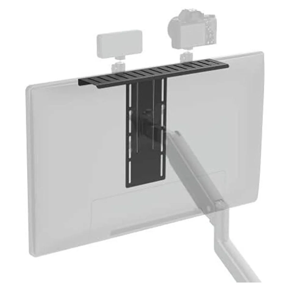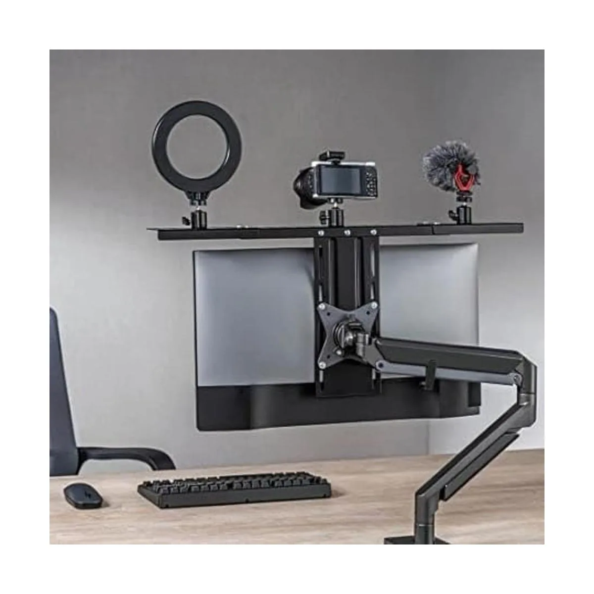 Mount Plus MDS122 Estante de monitor compatible con VESA todo en uno para organizador de dispositivos, perfecto para reuniones en línea y transmisión en vivo como cámaras, micrófonos, focos, cámaras web, altura ajustable, montaje de monitor sin espejo DSLR