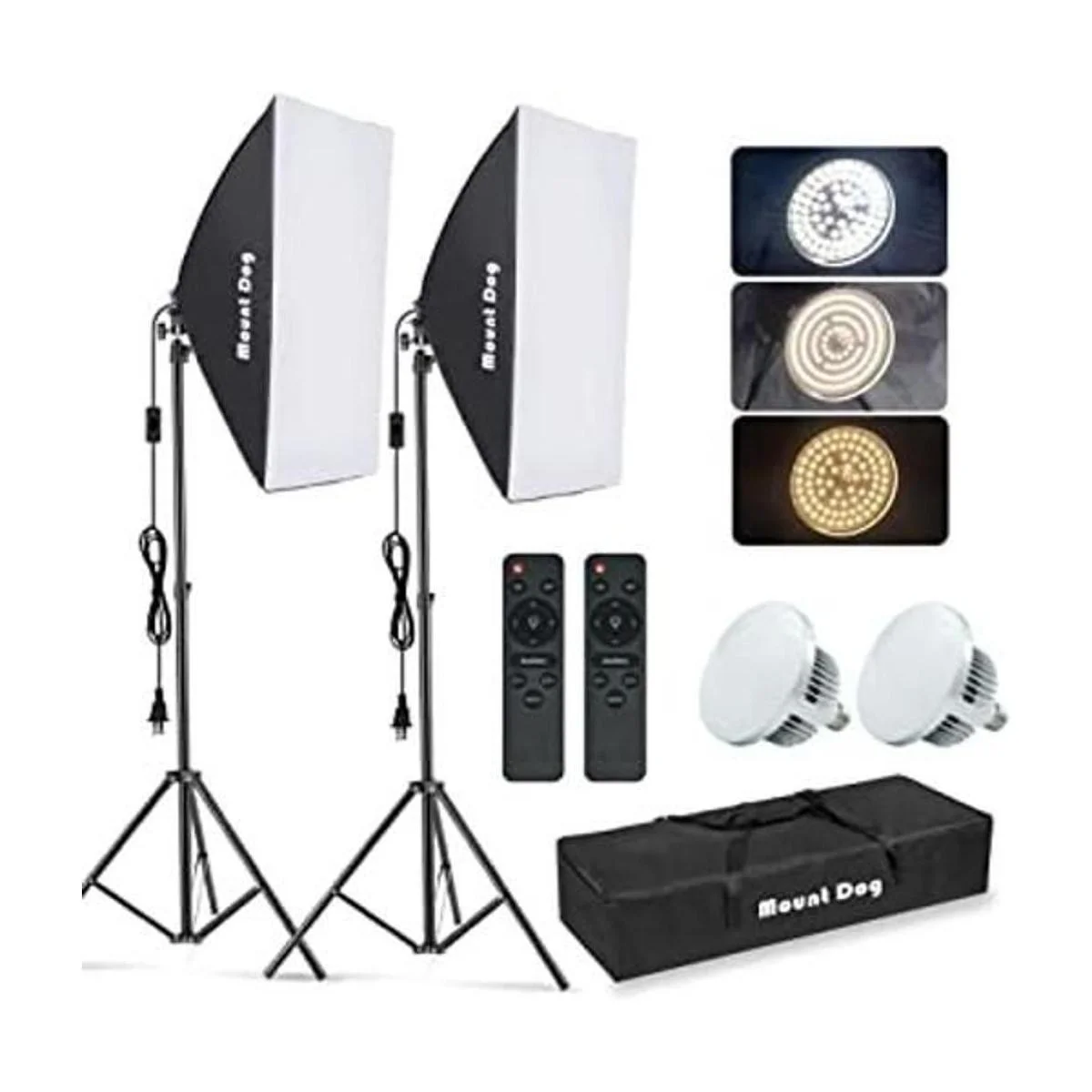 MOUNTDOG Kit de iluminación Softbox, 2 x 19.7 x 27.5 pulgadas, sistema de iluminación continua de fotografía con 2 bombillas LED E27 de 85 W 5700 K y control remoto para retratos, productos de fotografía de moda