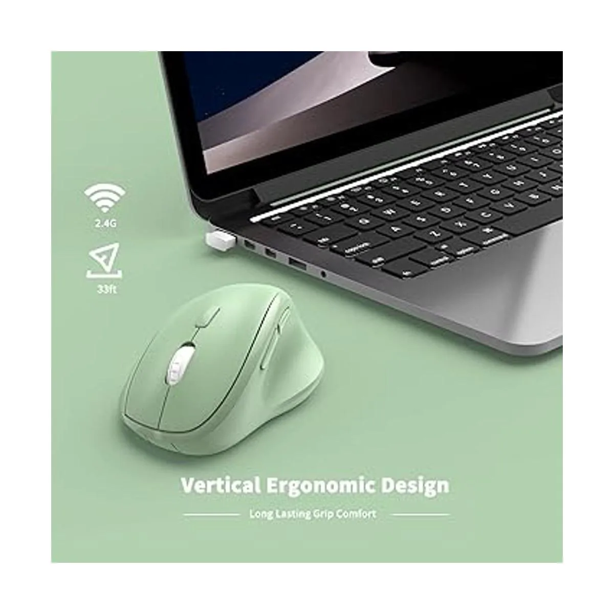 Mouse inalámbrico ergonómico con receptor USB para PC, laptop y escritorio, mouse Ergo con clics silenciosos, aproximadamente 16 meses de duración de la batería, hasta 1600 DPI y 1 batería AA, color verde