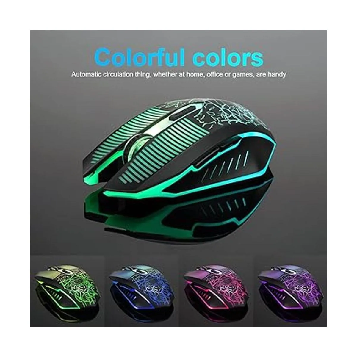Retroiluminación LED RGB circular: la retroiluminación LED de color arcoíris se ilumina respirando, el color cambiará circular. Hay un interruptor independiente en la parte inferior del mouse, solo puedes encender/apagar el LED y usarlo durante más tiempo.