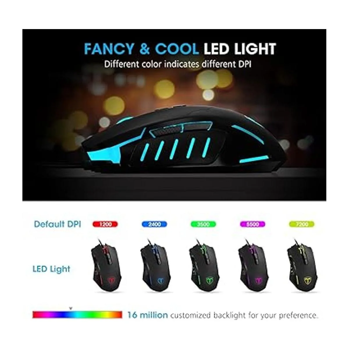 DPI de alta precisión y tasa de sondeo: el mouse para juegos funciona perfectamente con sensor óptico y evita clics aleatorios. Ajusta DPI 5007200, tasa de sondeo de 1251000 Hz para proporcionar movimientos precisos del cursor para el juego.