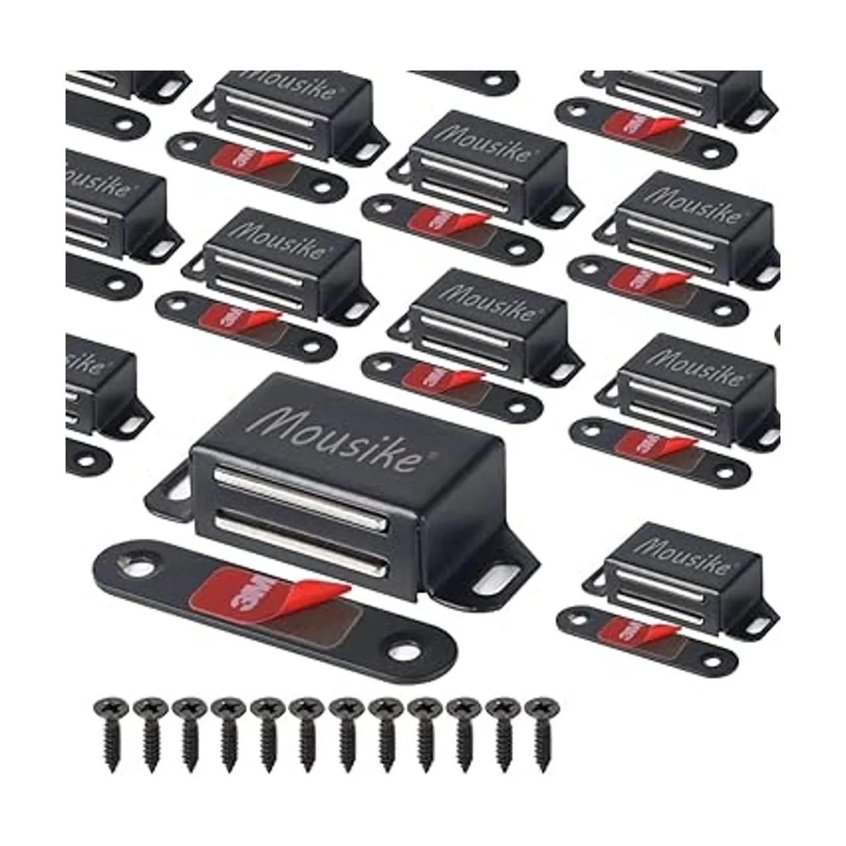 Mousike Imanes de gabinete de 30 lb con imanes de puerta de color negro con fuerte magnético para armario de cocina, armario de armario, puerta y cajón 16 unidades
