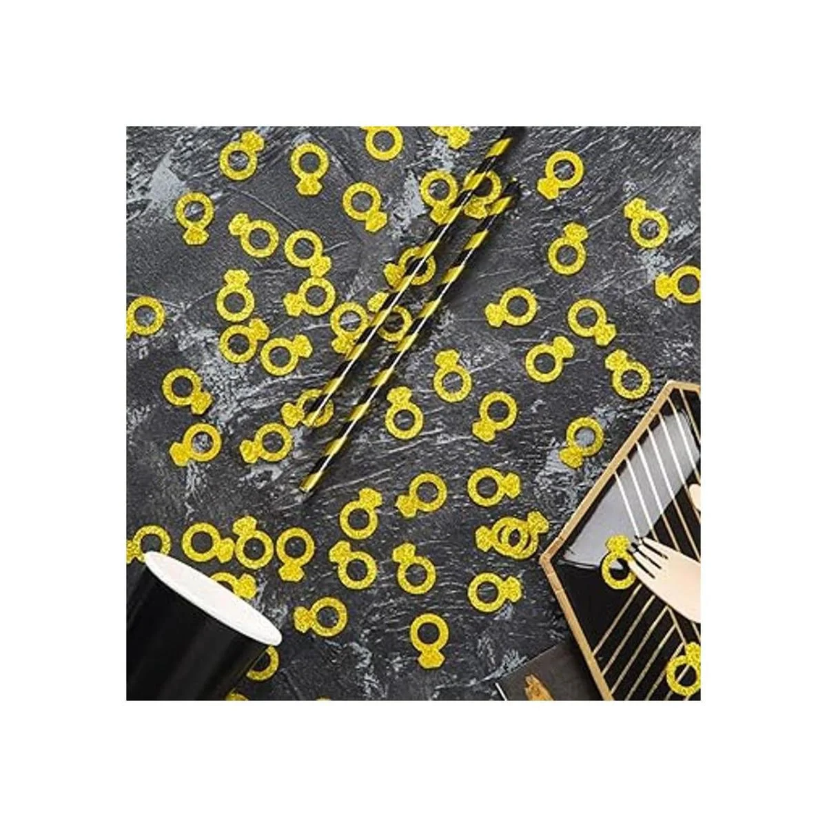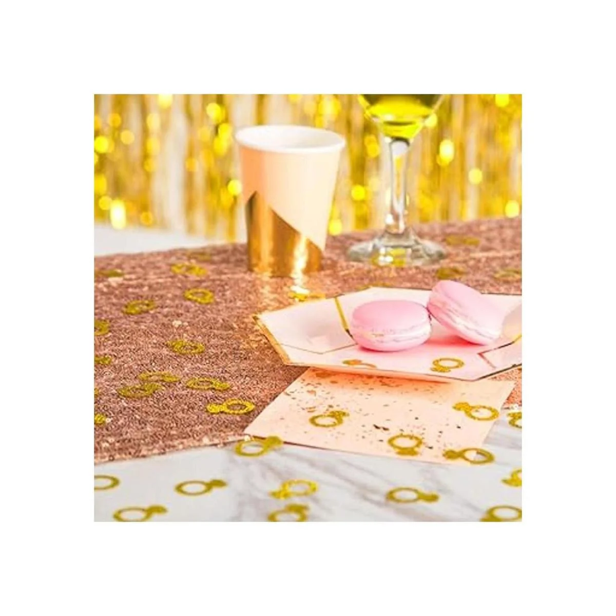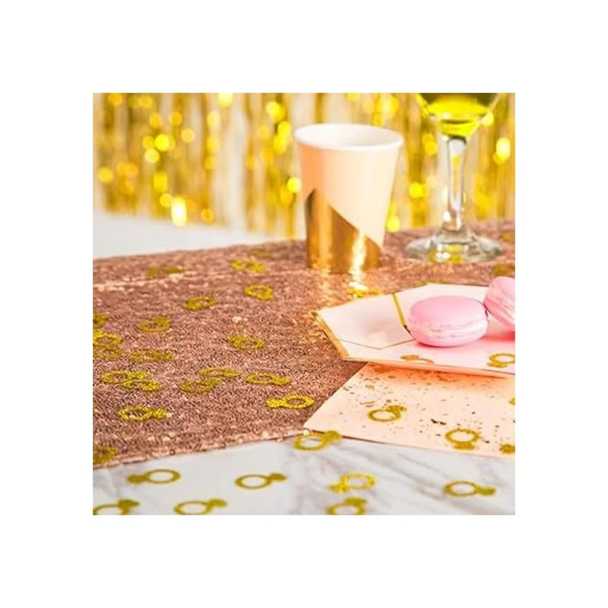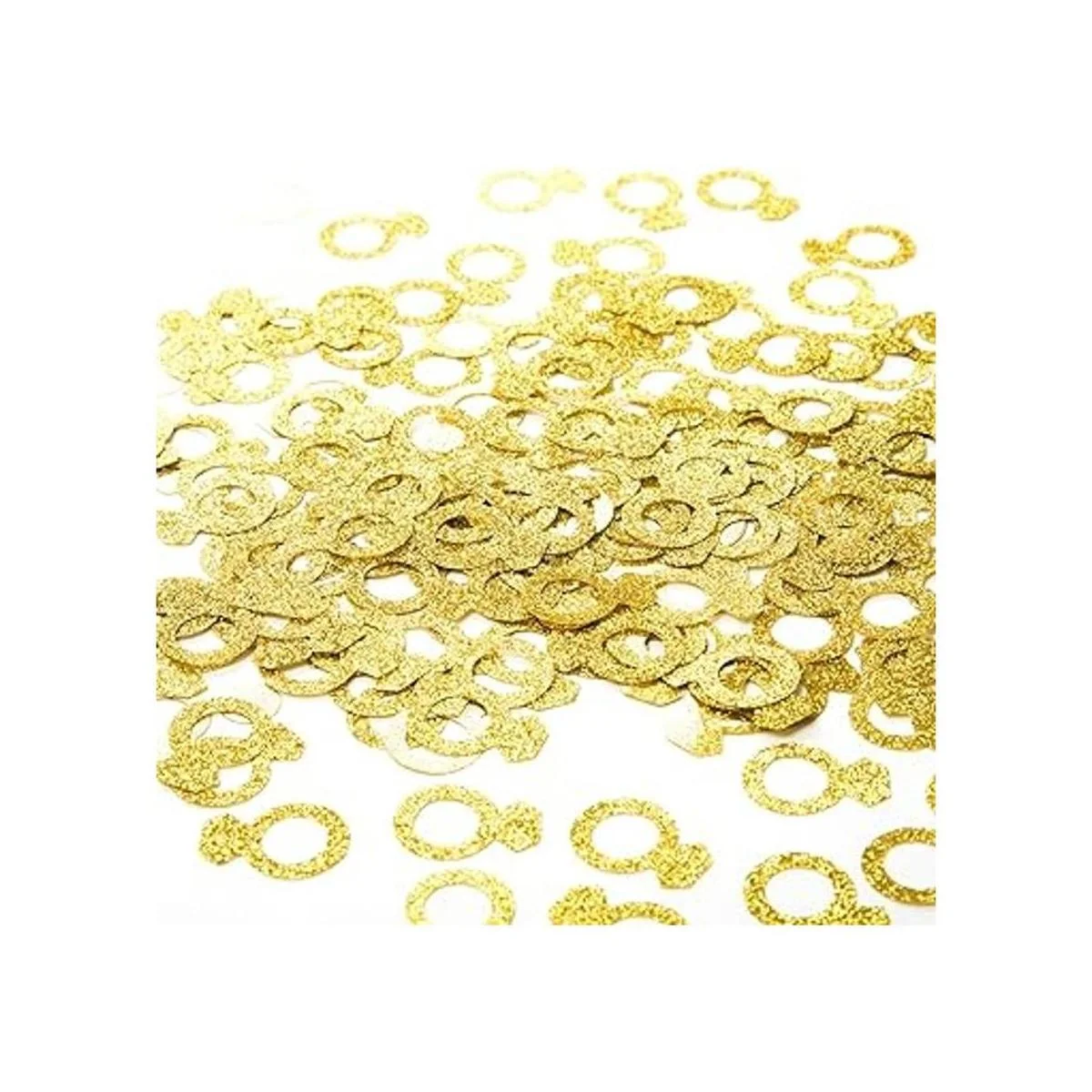 MOWO Anillo de diamante dorado con confeti para decoración de mesa y eventos, purpurina dorada, 200 unidades