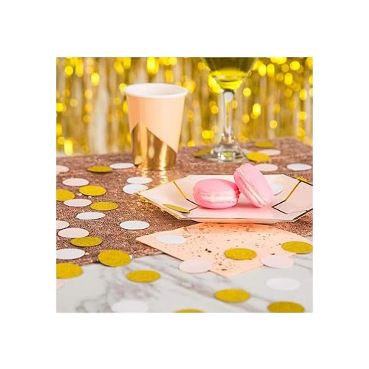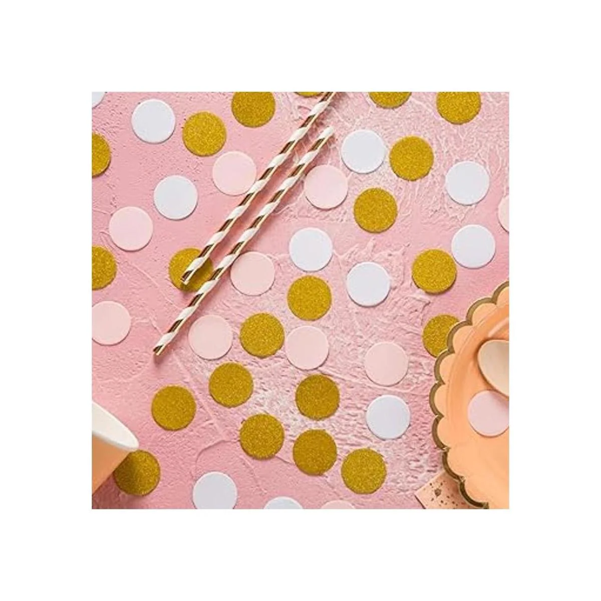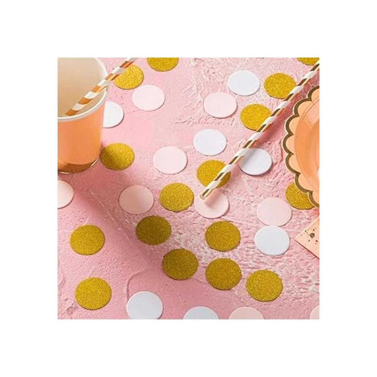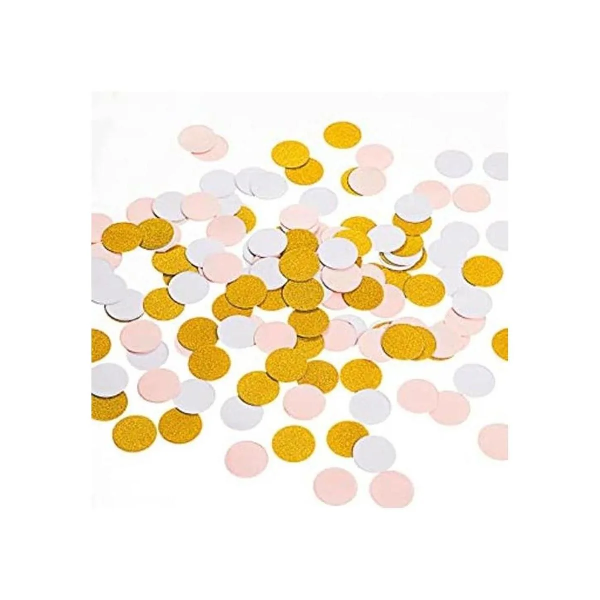 MOWO Círculos de confeti de papel, decoración de fiesta de boda y decoración de mesa, 1.2 pulgadas de diámetro dorado brillante, rosa, mezcla blanca, 200 unidades