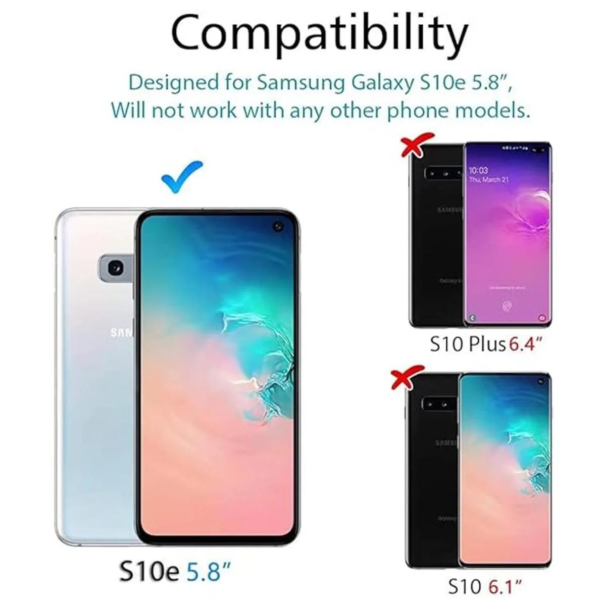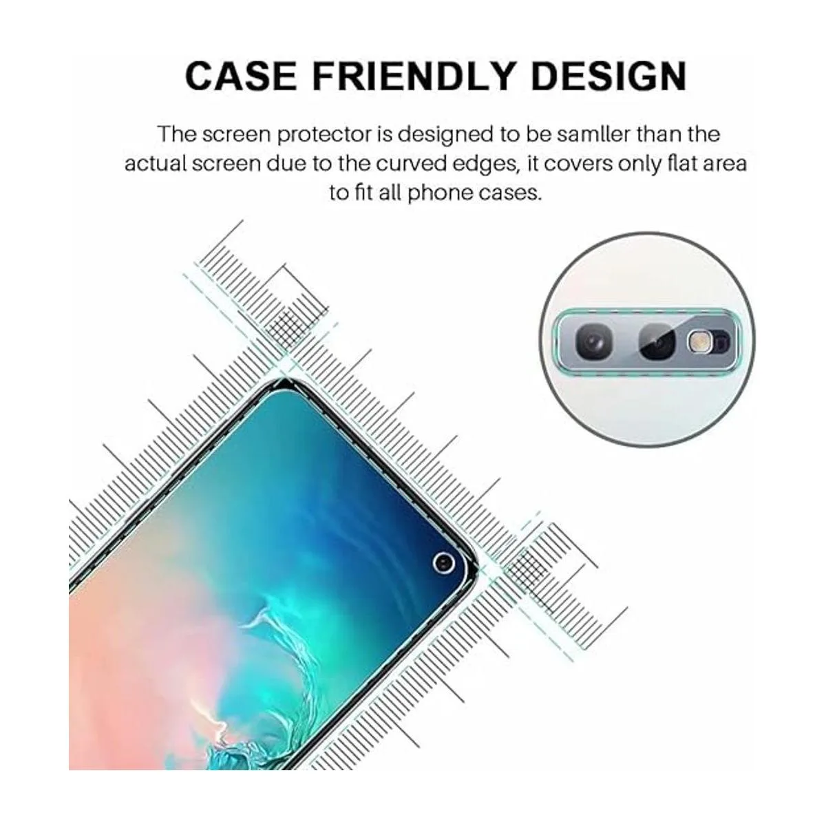 Paquete de 2 protectores de pantalla de vidrio templado y 2 protectores de lente de cámara para Samsung Galaxy S10e. No es compatible con Samsung Galaxy S10 / S10 Plus y cualquier otro dispositivo.
