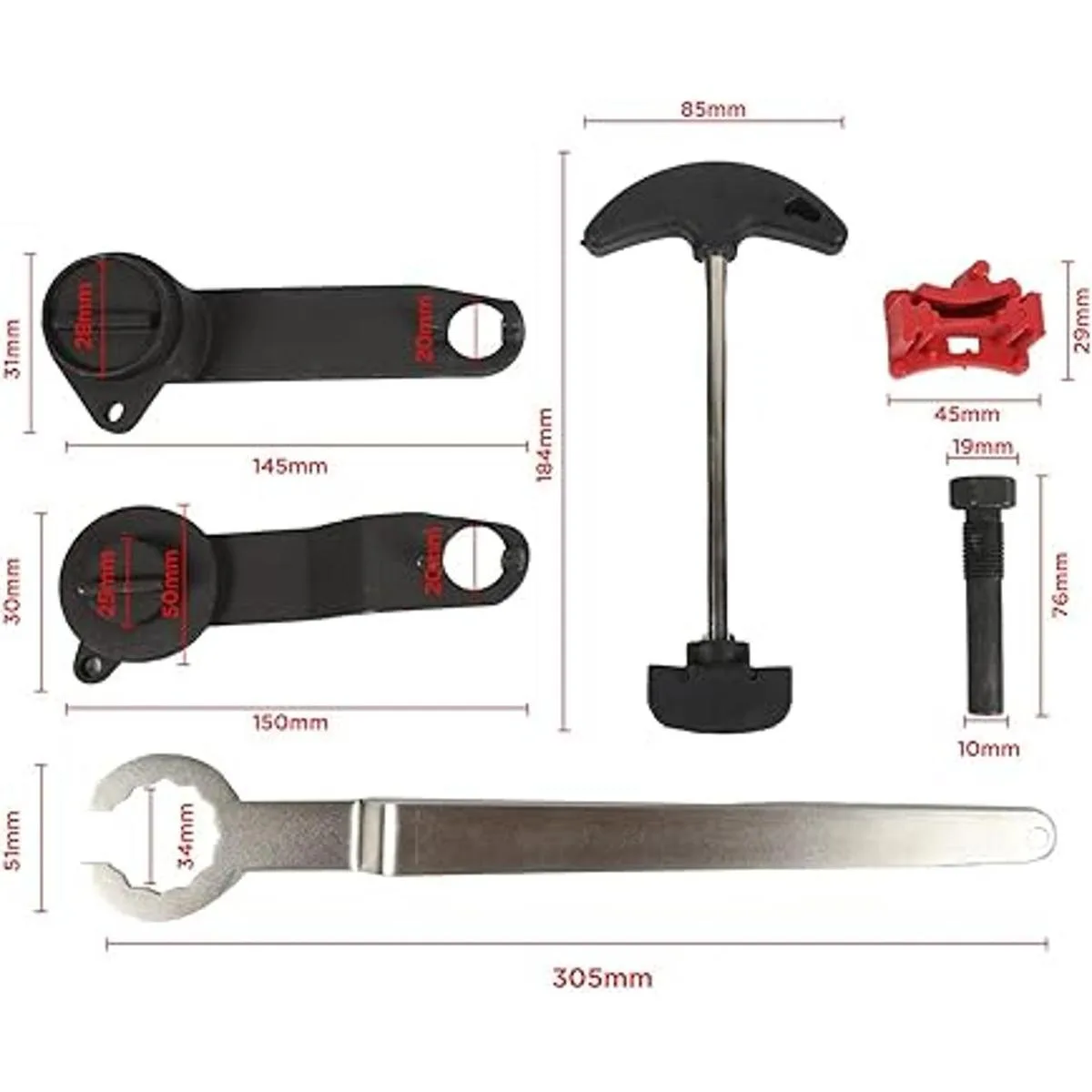 Este kit de herramientas de sincronización incluye herramientas básicas para bloqueo del árbol de levas, reemplazo del cigeñal y reemplazo de correa de distribución