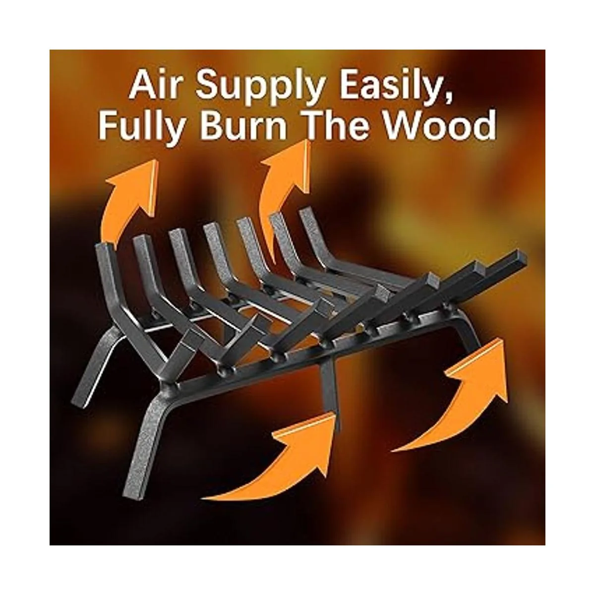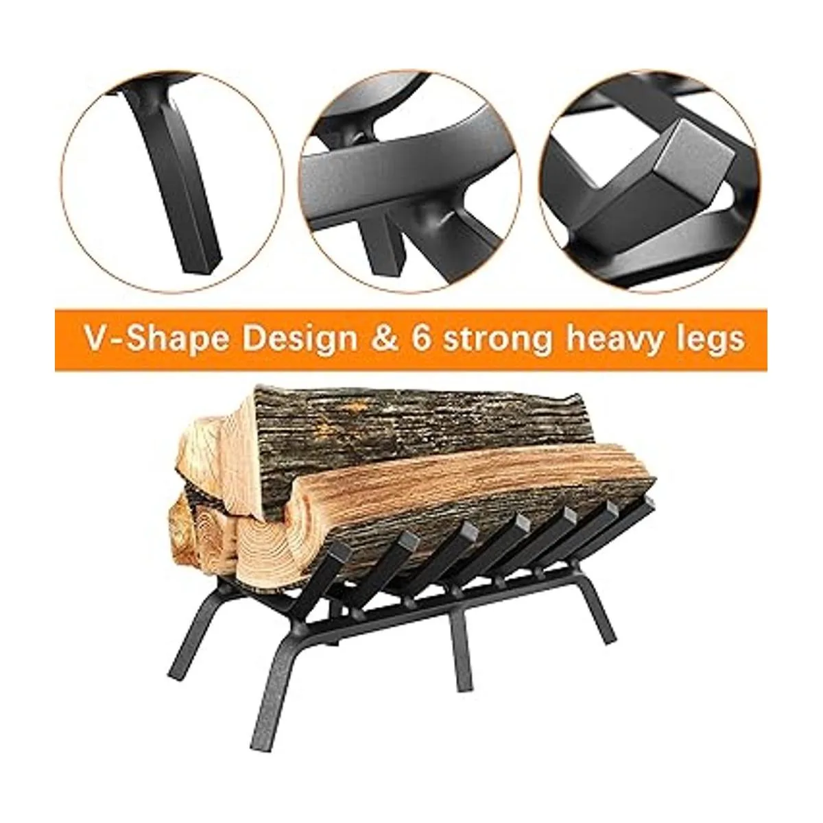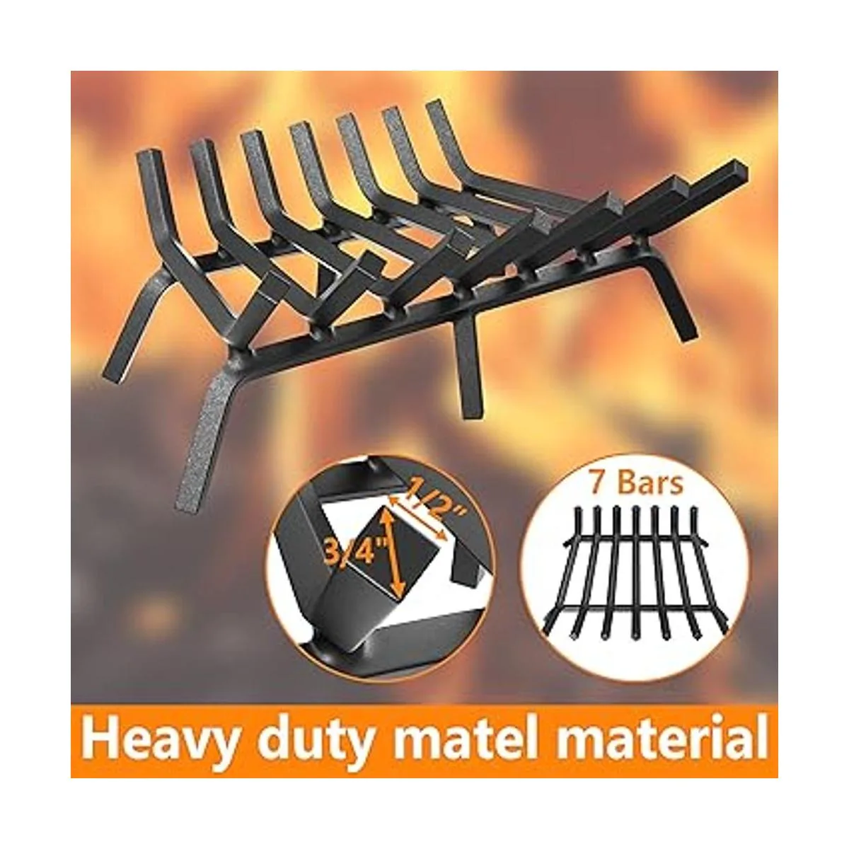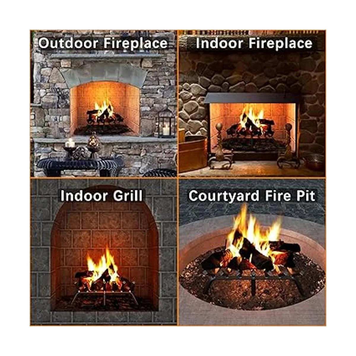 Estructura resistente y estable: la estructura de la rejilla de chimenea de leña se compone de 7 barras de acero sólido y 6 patas de acero, que son fuertes y duraderas. La rejilla de chimenea se coloca en el marco en forma de V para mejorar la estabilidad y colocar troncos de forma estable. Estructura completa, sin instalación.