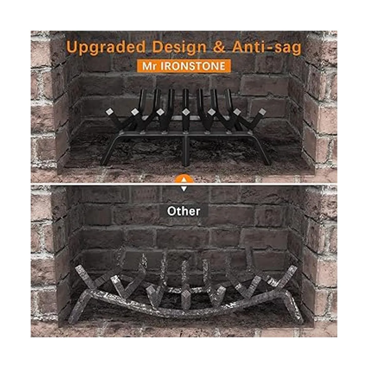 Mr IRONSTONE Rejilla de chimenea de acero sólido de 24 pulgadas, resistente estante para quemar leña de 34 pulgadas, rejilla de fuego para herramientas de leña al aire libre, soporte de troncos de chimenea de interior de hierro forjado