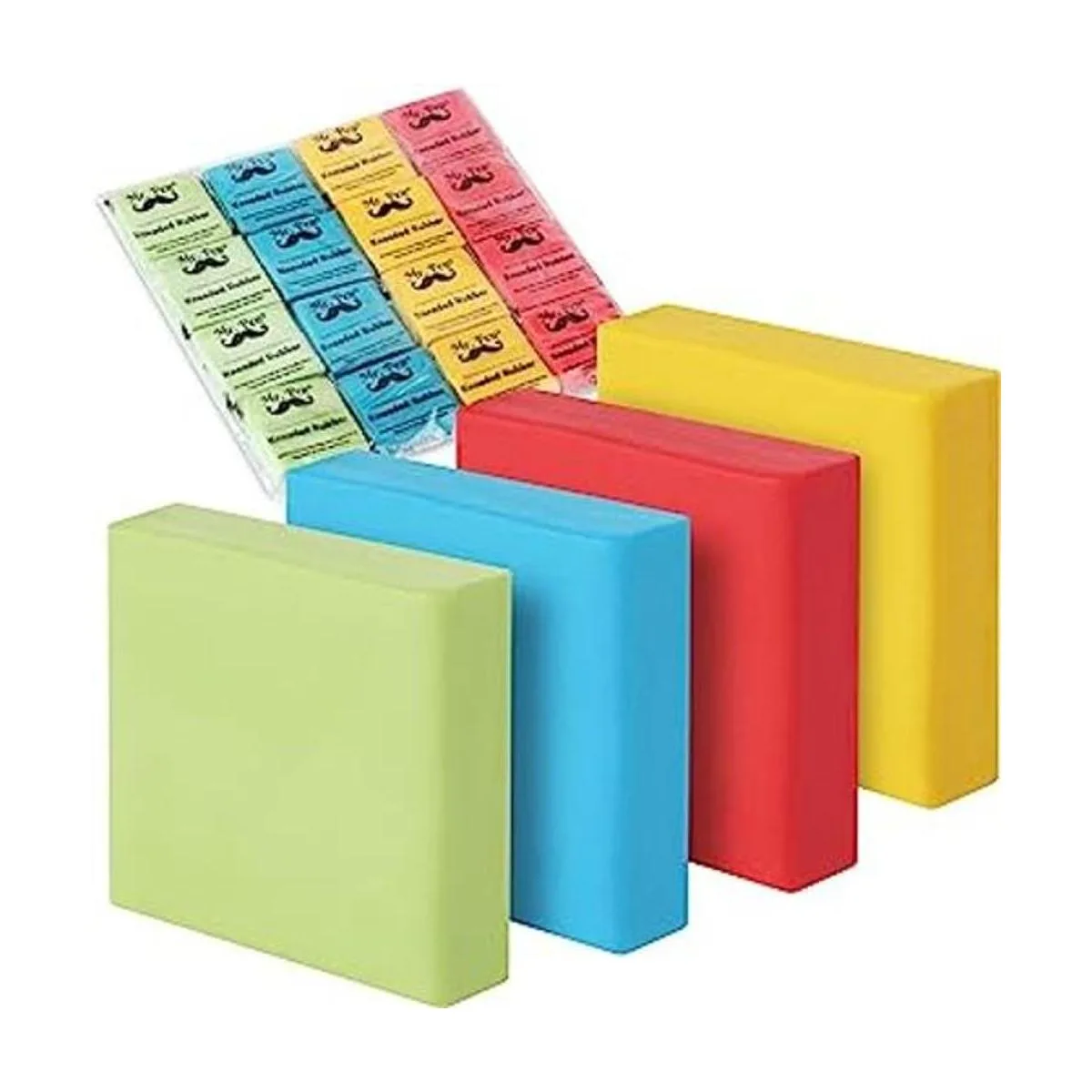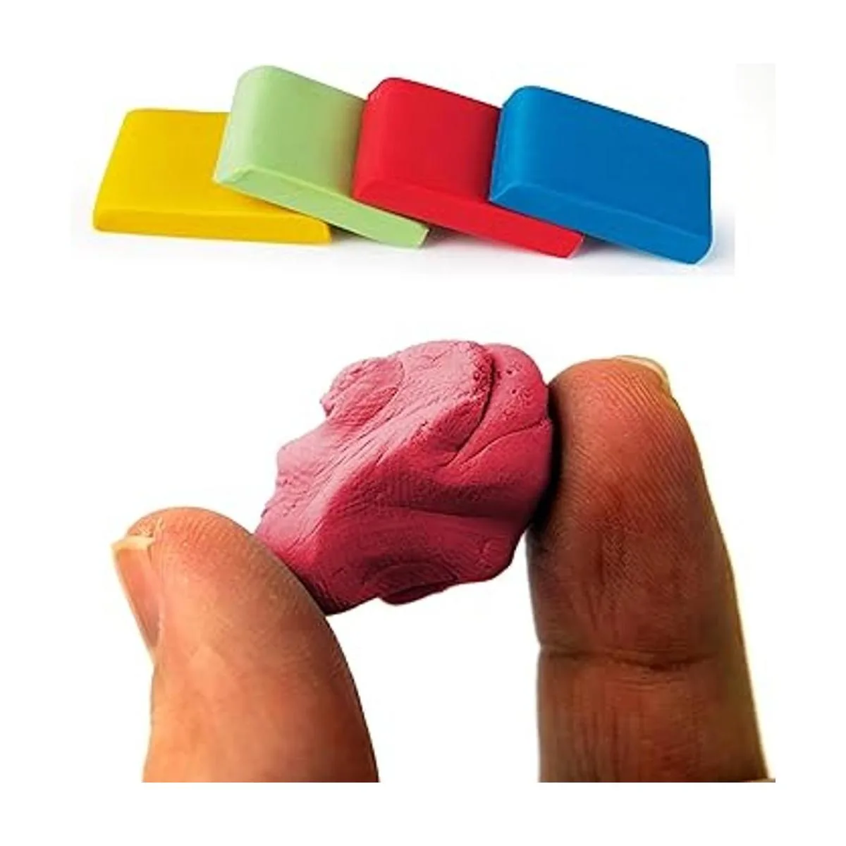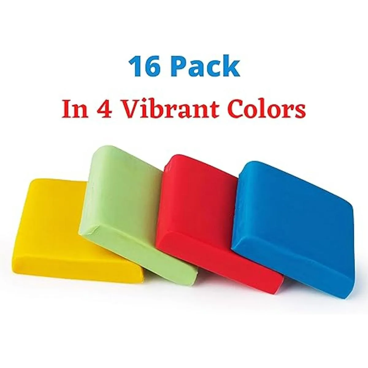 Incluye: un juego de 16 borradores amasados de colores surtidos azul, rosa, amarillo y verde
